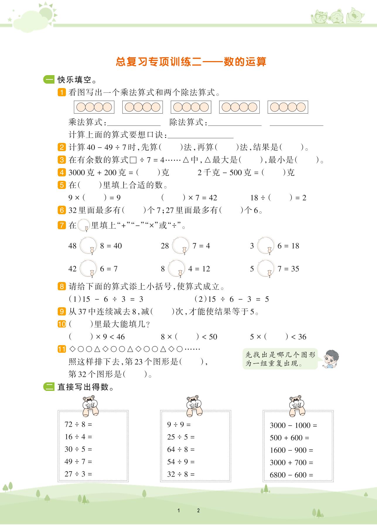 2021下册二年级数学人教版 第十单元 总复习——数的运算