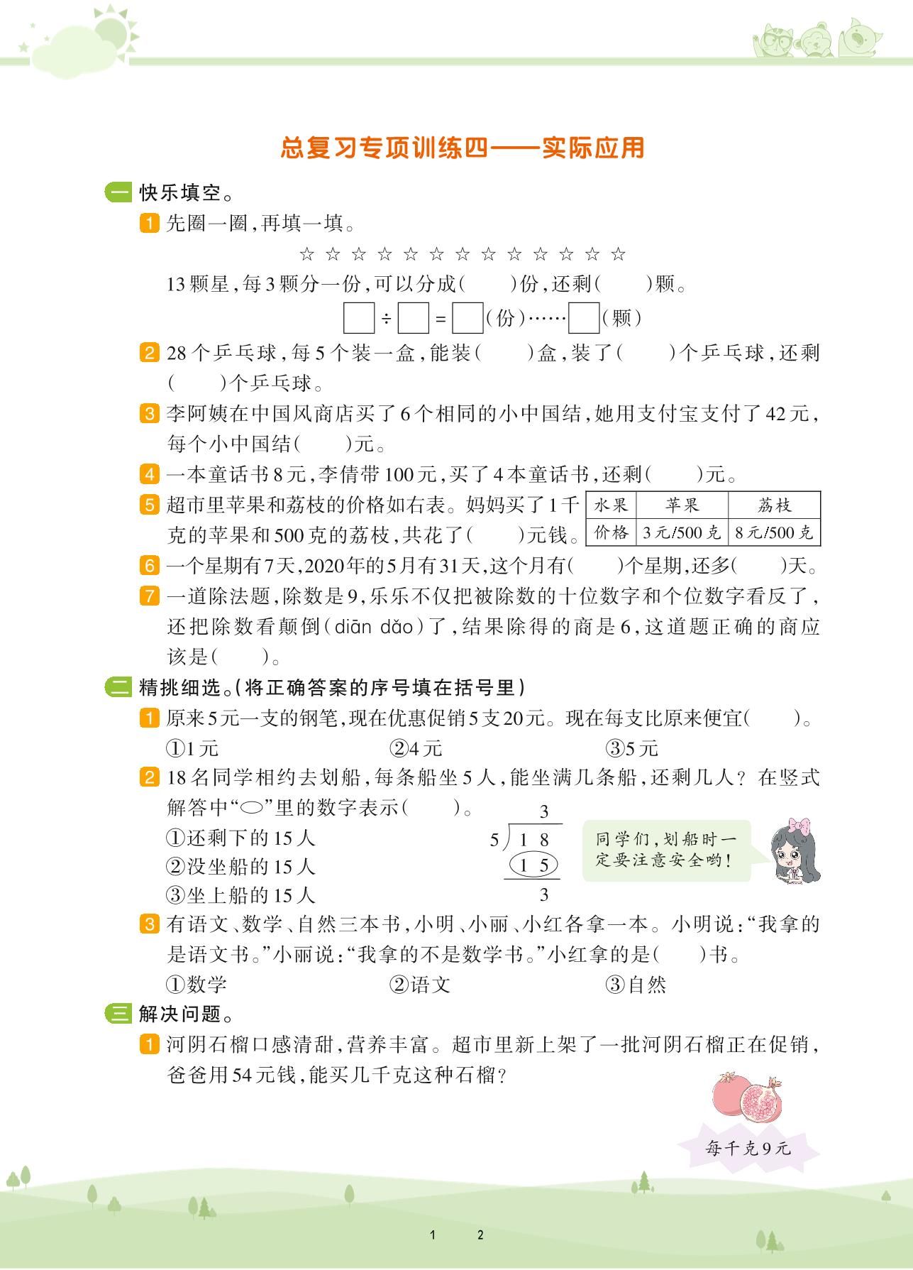 2021下册二年级数学人教版 第十单元 总复习——实际应用