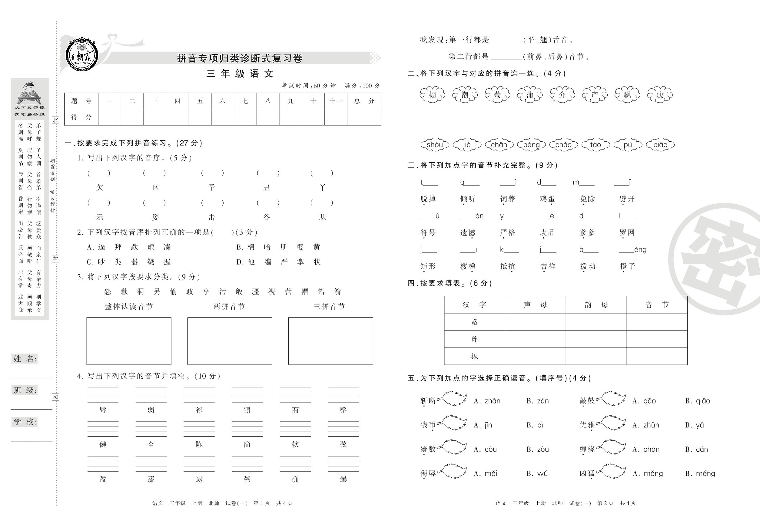 王朝霞期末专项卷三年级上册语文(北师版)_R210801101927【1】