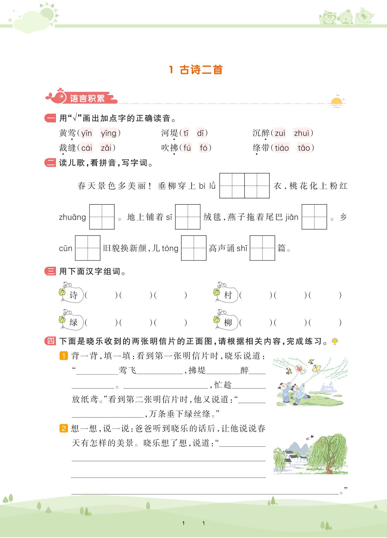 2021下册二年级语文人教版 第一单元 课文——1 古诗二首