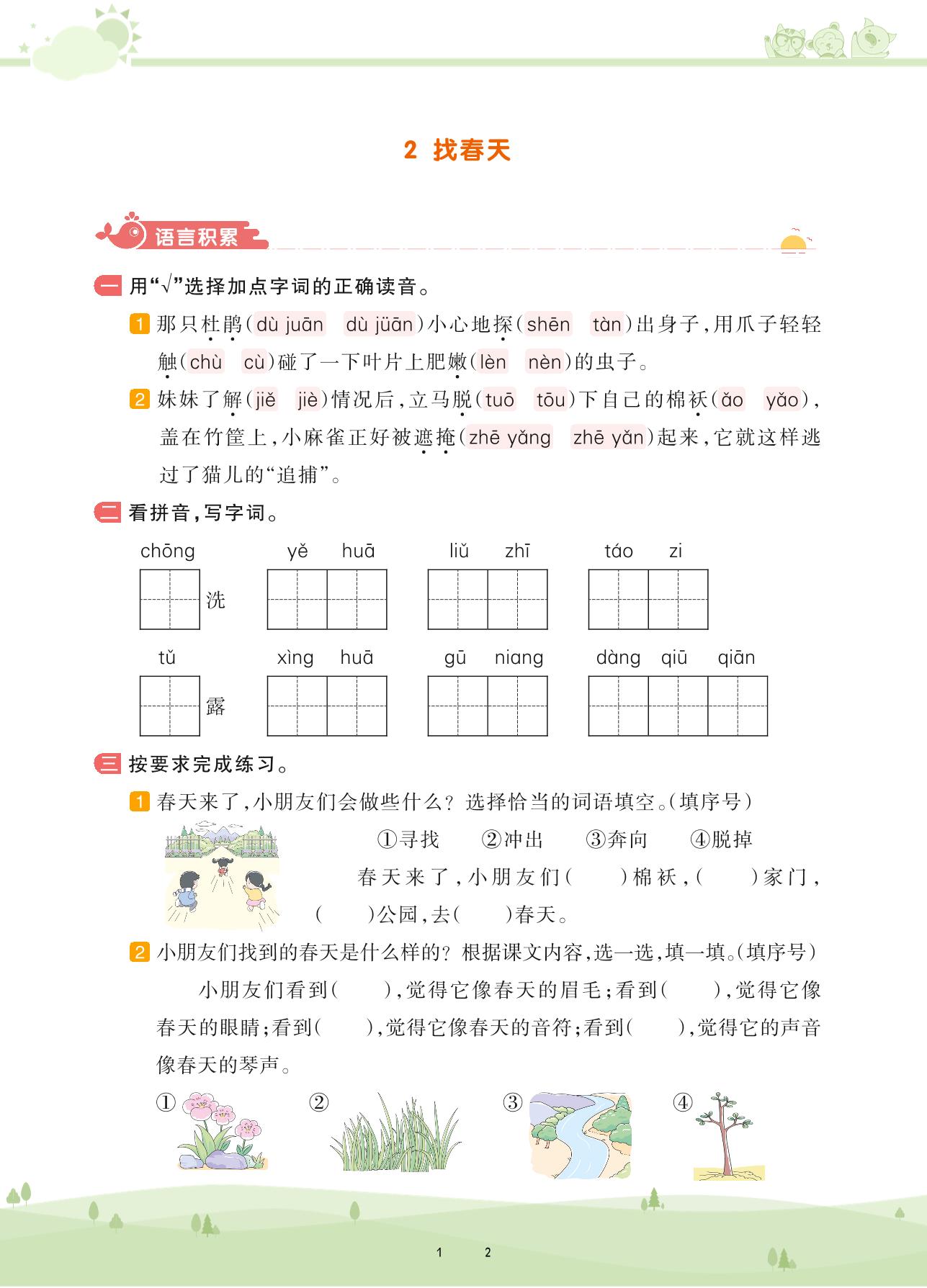 2021下册二年级语文人教版 第一单元 课文——2 找春天