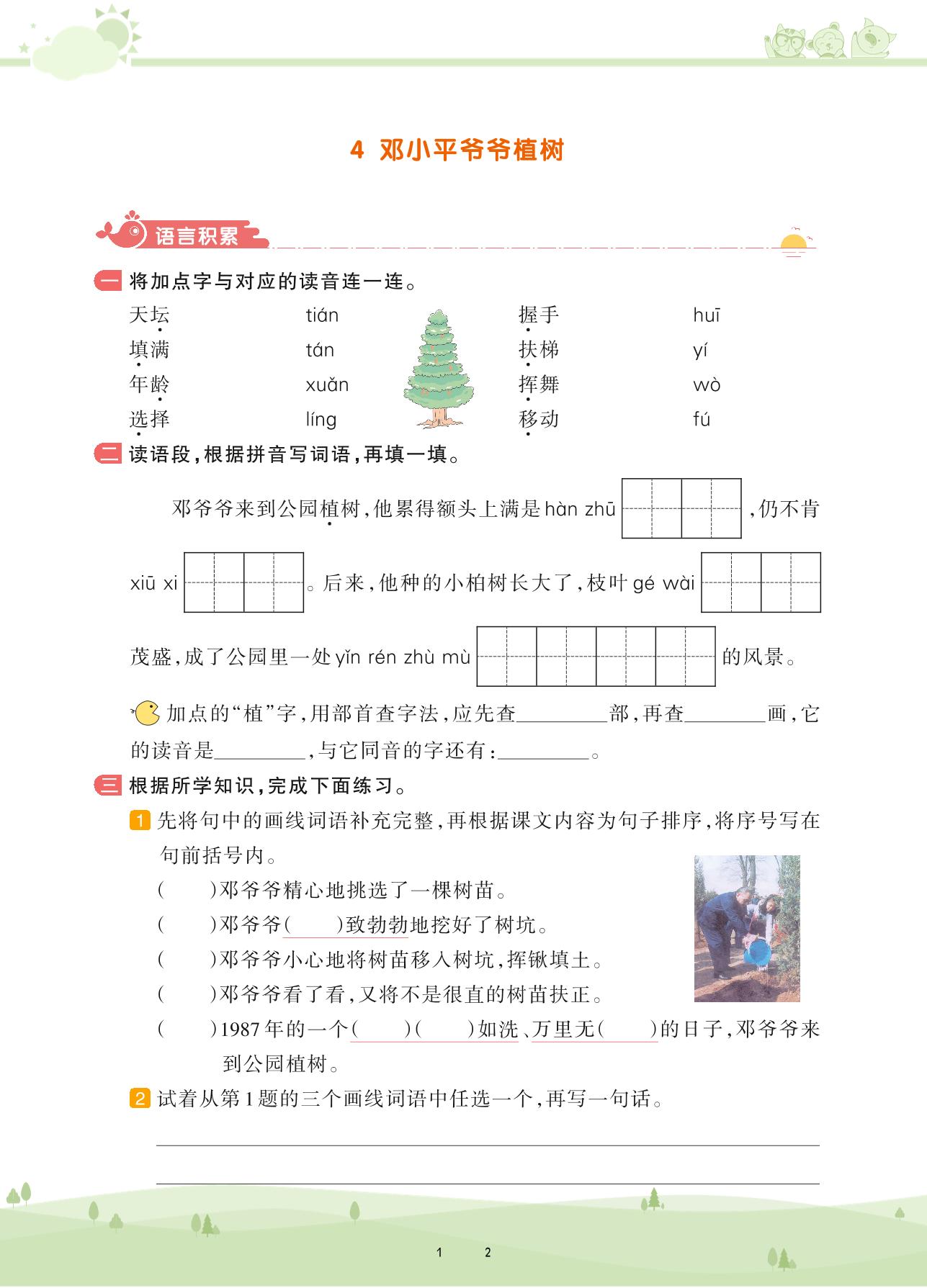 2021下册二年级语文人教版 第一单元 课文——4 邓小平爷爷植树