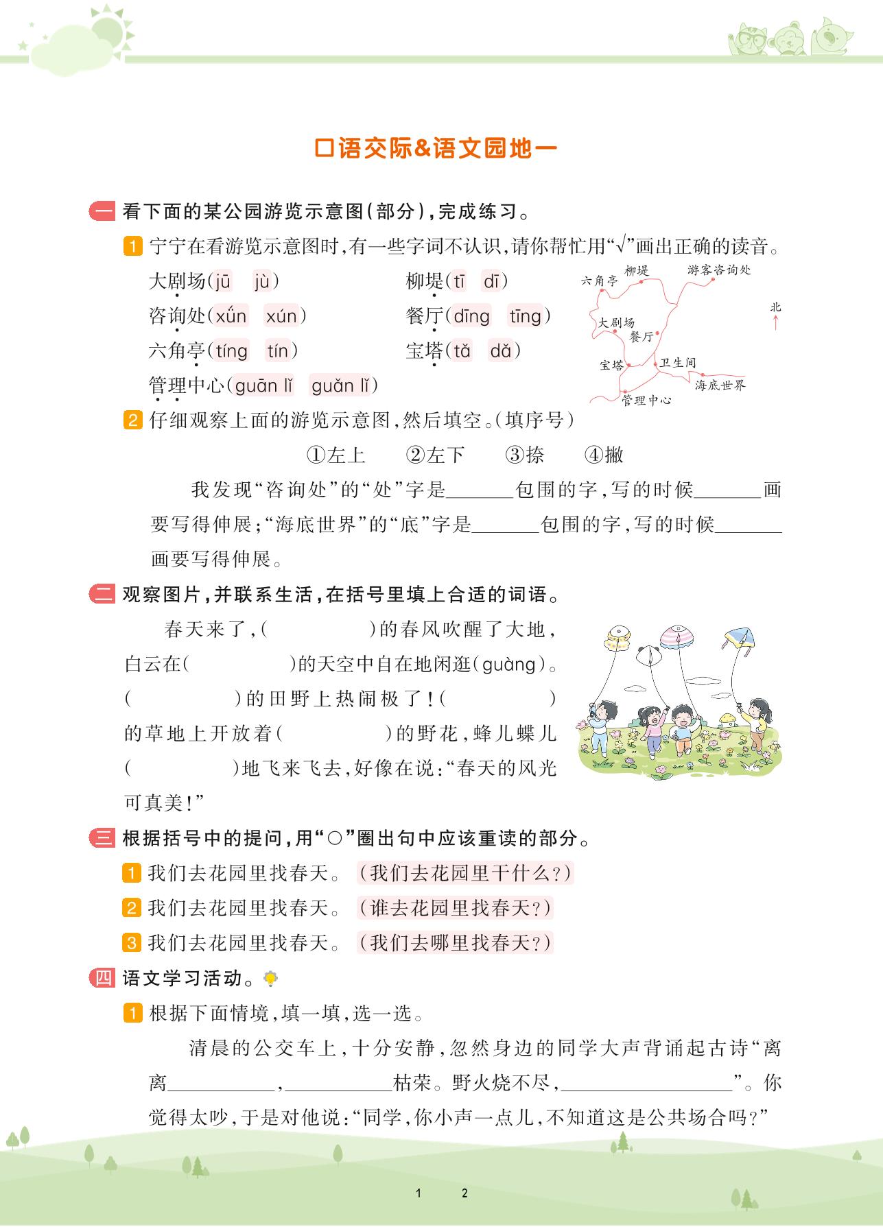 2021下册二年级语文人教版 第一单元 课文——口语交际&语文园地一
