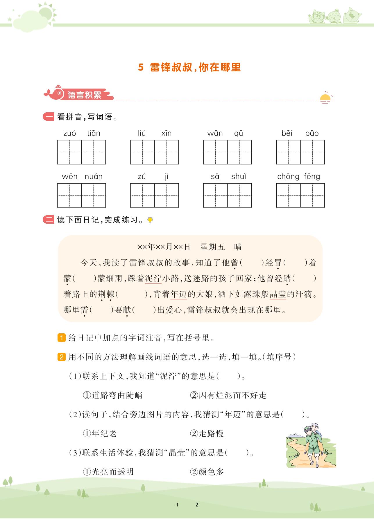 2021下册二年级语文人教版 第二单元 课文——5 雷锋叔叔,你在哪里