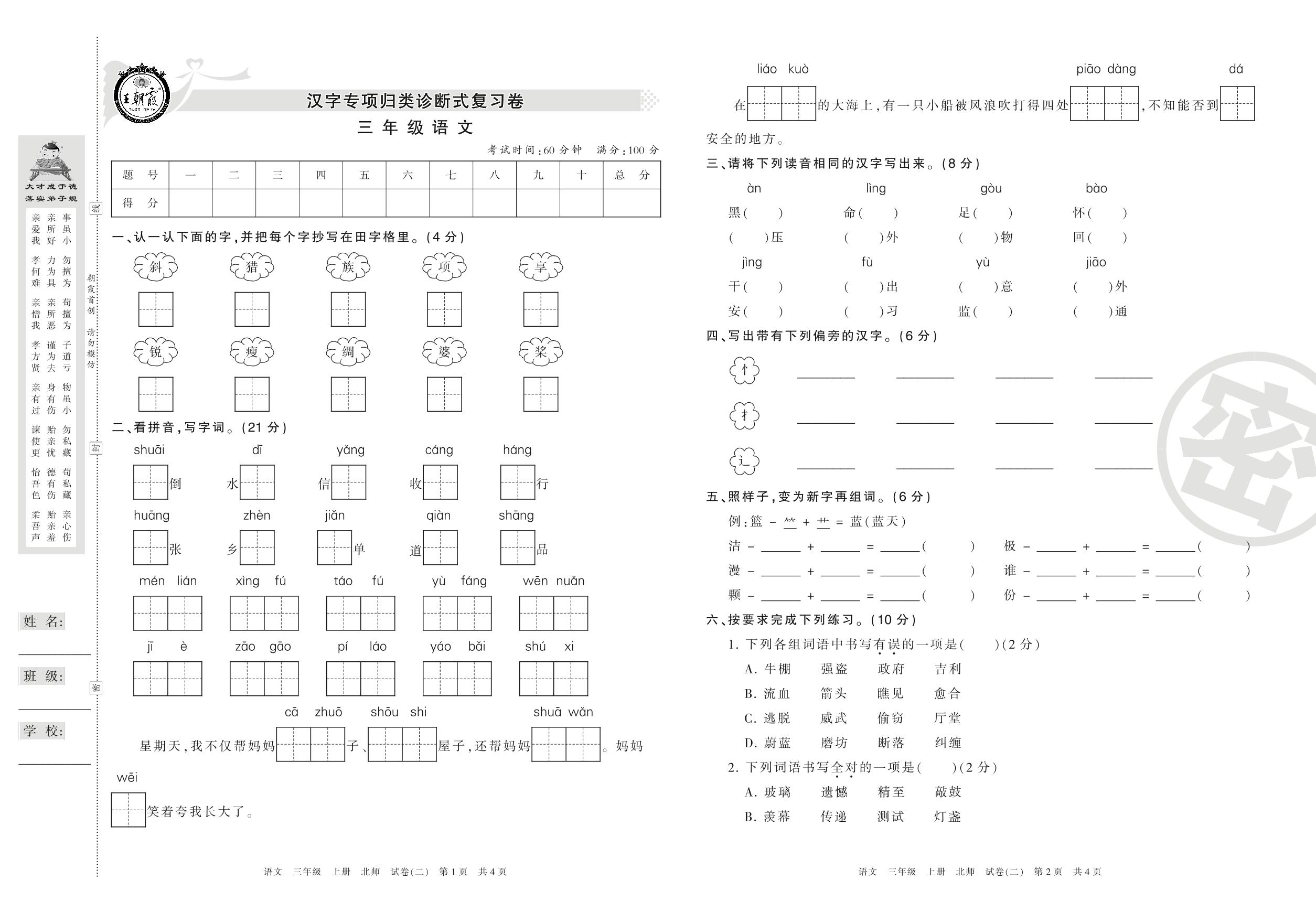 三年级语文北师版上册专项卷