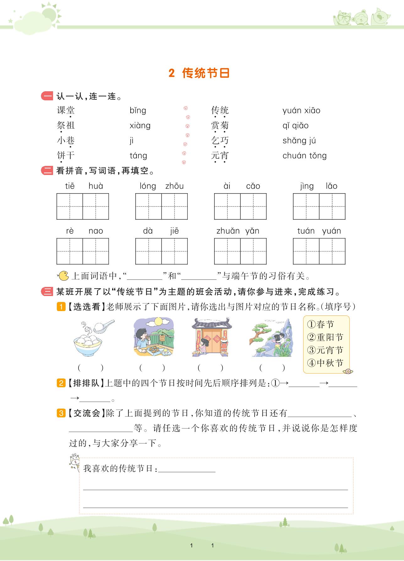 2021下册二年级语文人教版 第三单元 识字——2 传统节日