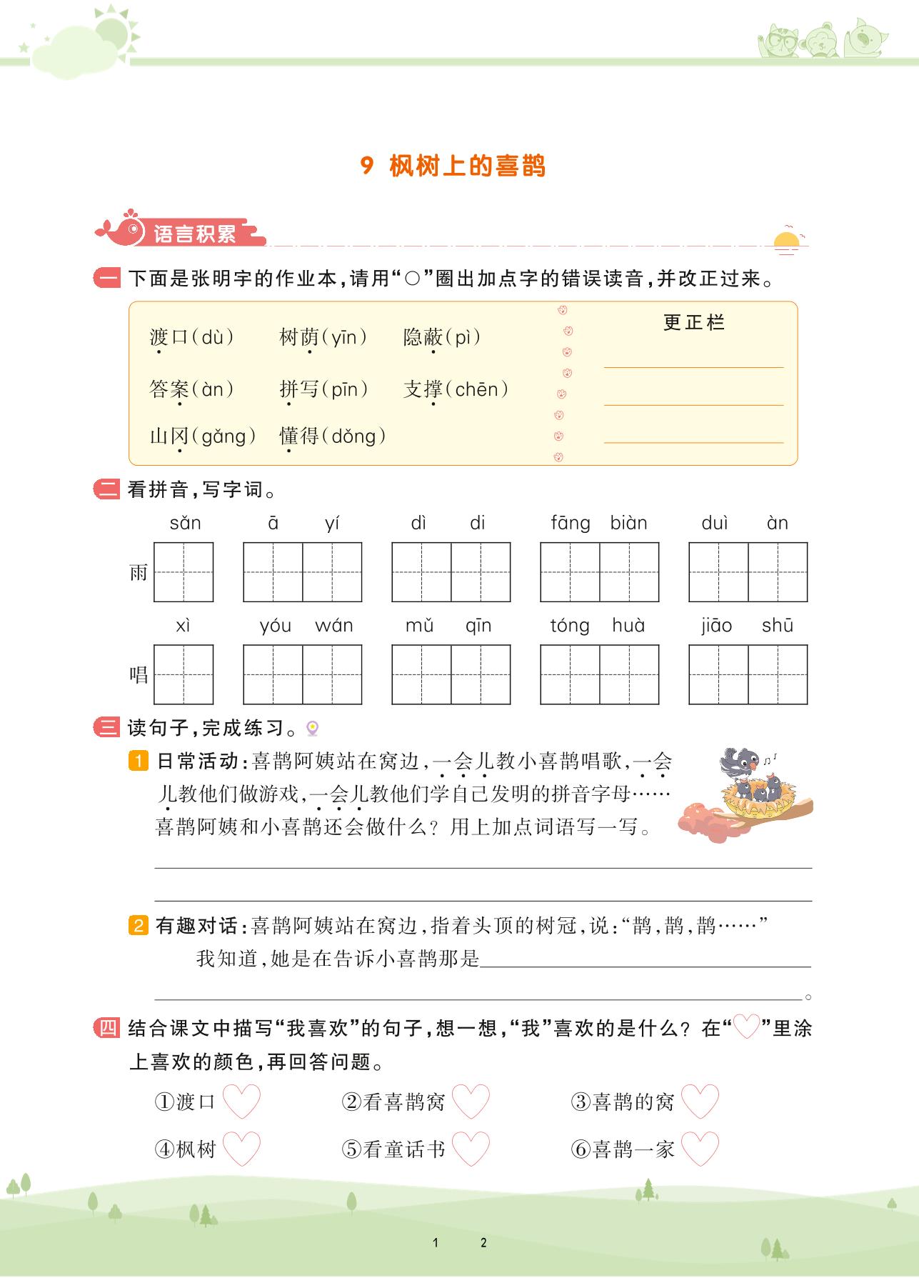 2021下册二年级语文人教版 第四单元 课文——9 枫树上的喜鹊