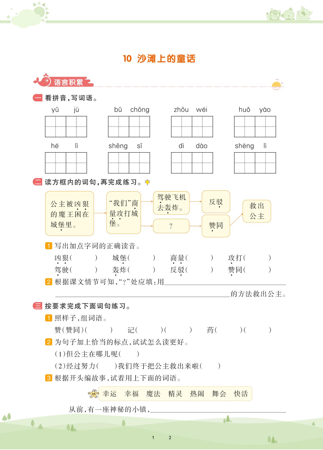 2021下册二年级语文人教版 第四单元 课文——10 沙滩上的童话
