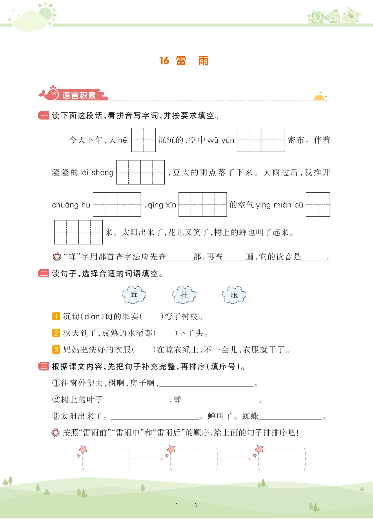 2021下册二年级语文人教版 第六单元 课文——16 雷雨