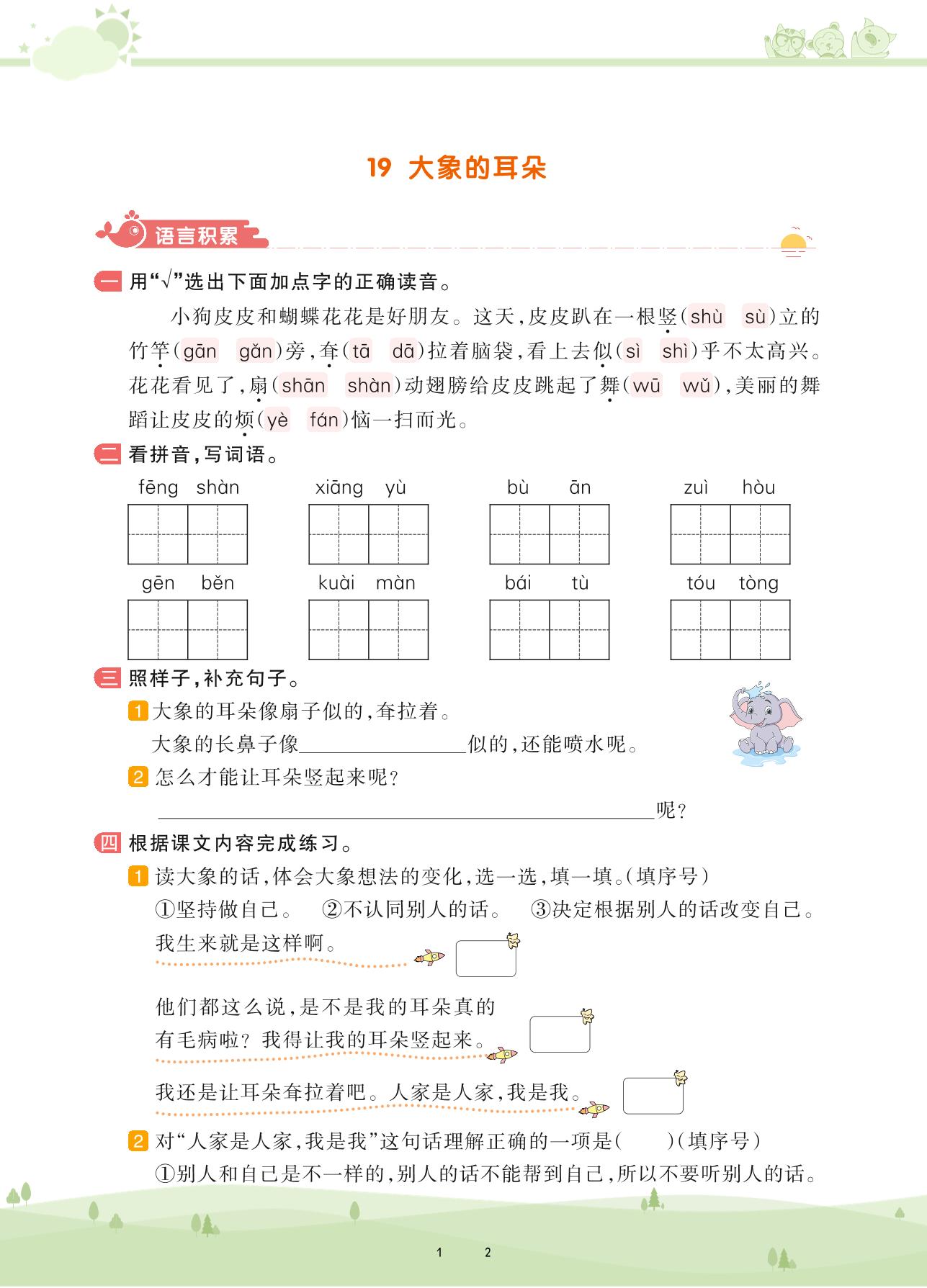2021下册二年级语文人教版 第七单元 课文——19 大象的耳朵