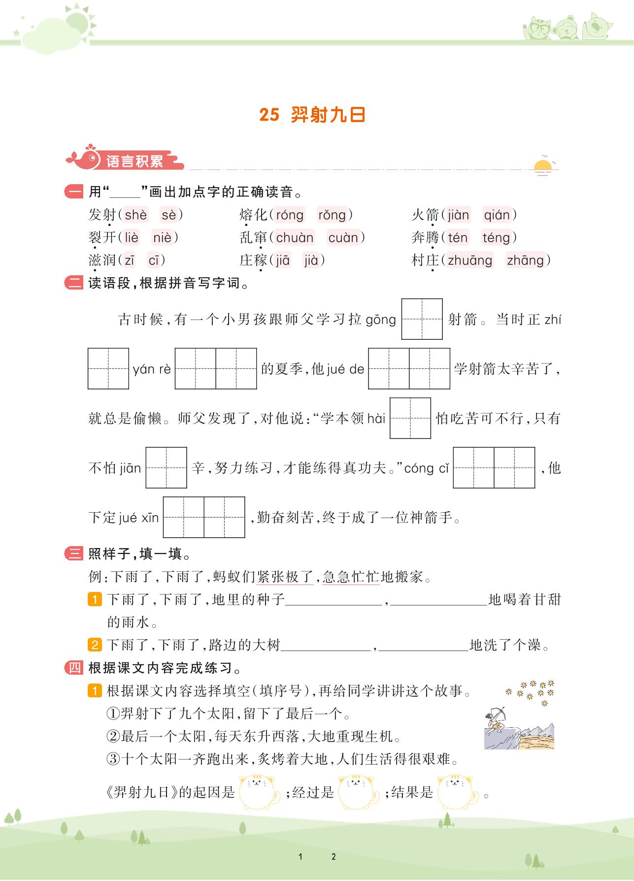 2021下册二年级语文人教版 第八单元 课文——25 羿射九日