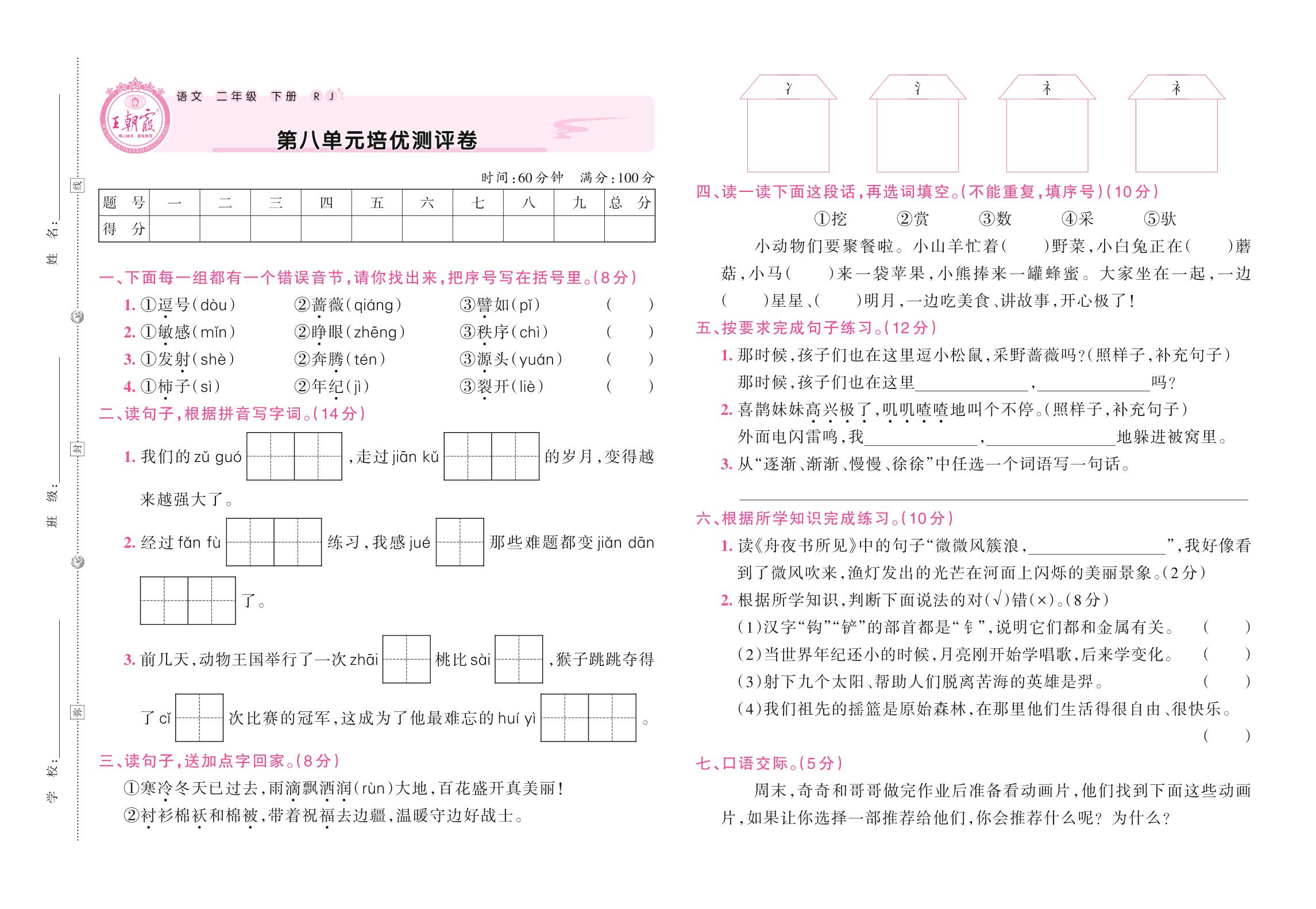 二年级语文人教版下册单元卷