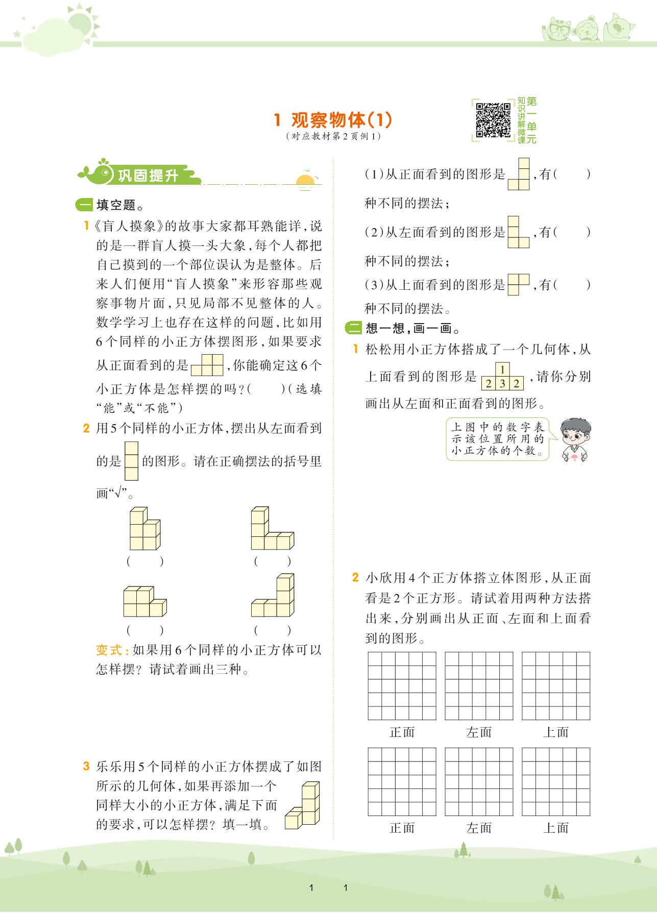 2021下册五年级数学人教版 第一单元 观察物体(三)——1 观察物体(1)