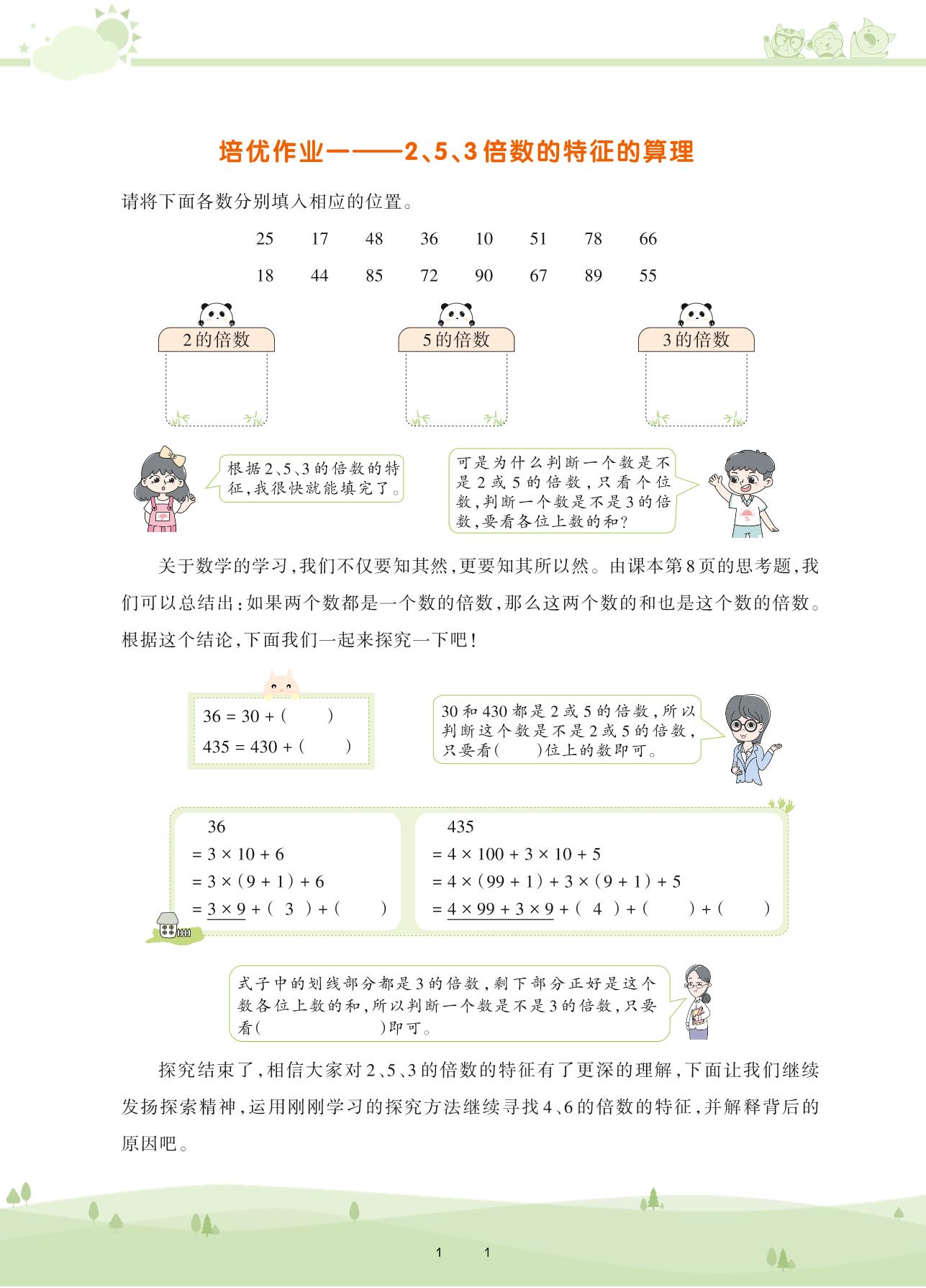 2021下册五年级数学人教版 第二单元 因数与倍数——培优作业一 2、5、3倍数的特征的算理