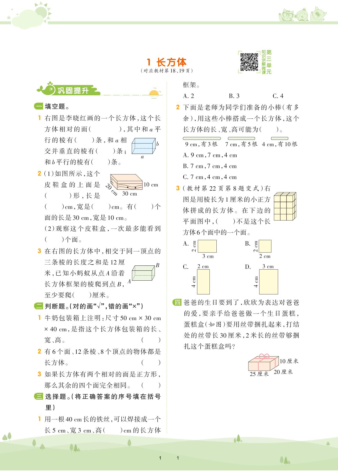 2021下册五年级数学人教版 第三单元 长方体和正方体——1 长方体