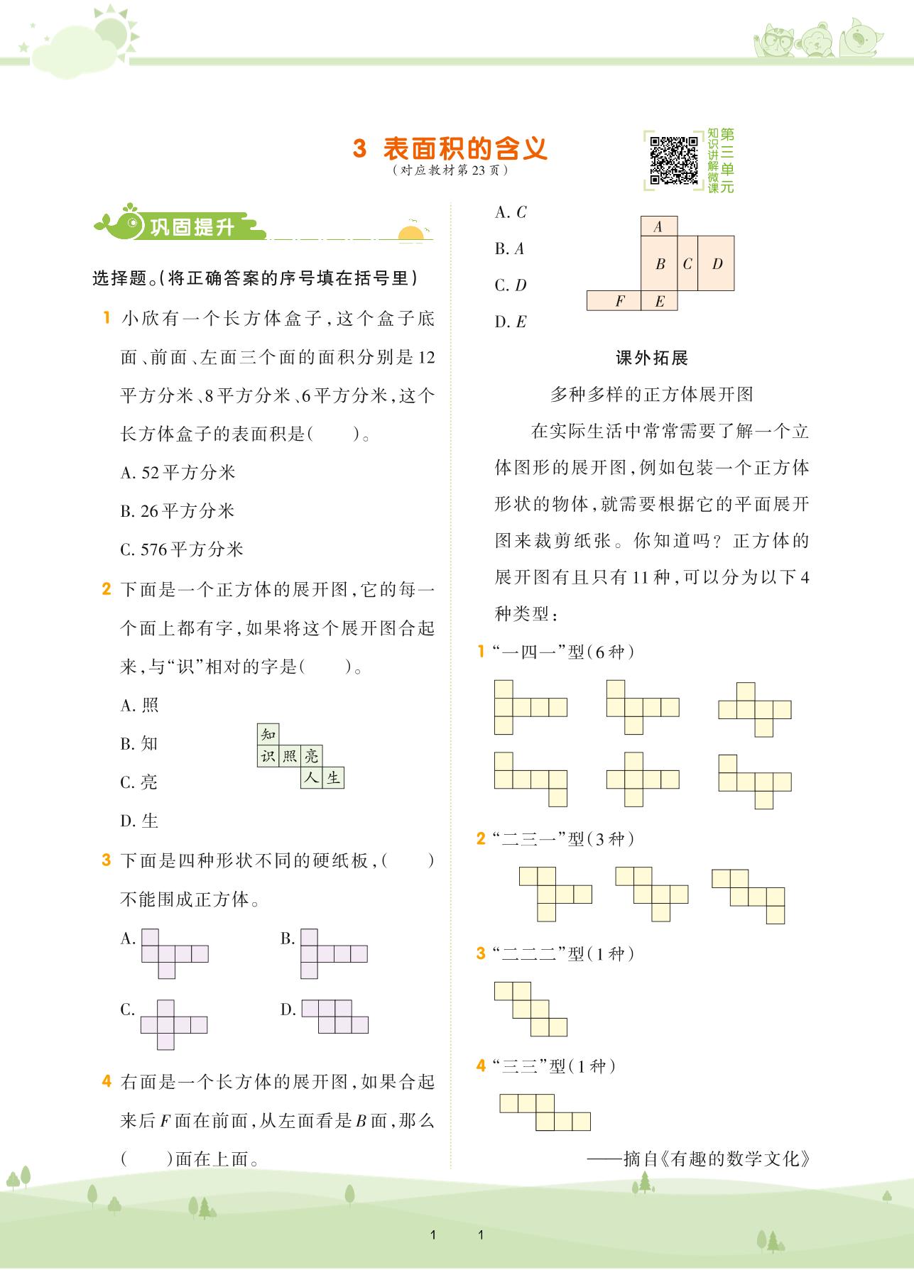 2021下册五年级数学人教版 第三单元 长方体和正方体——3 表面积的含义