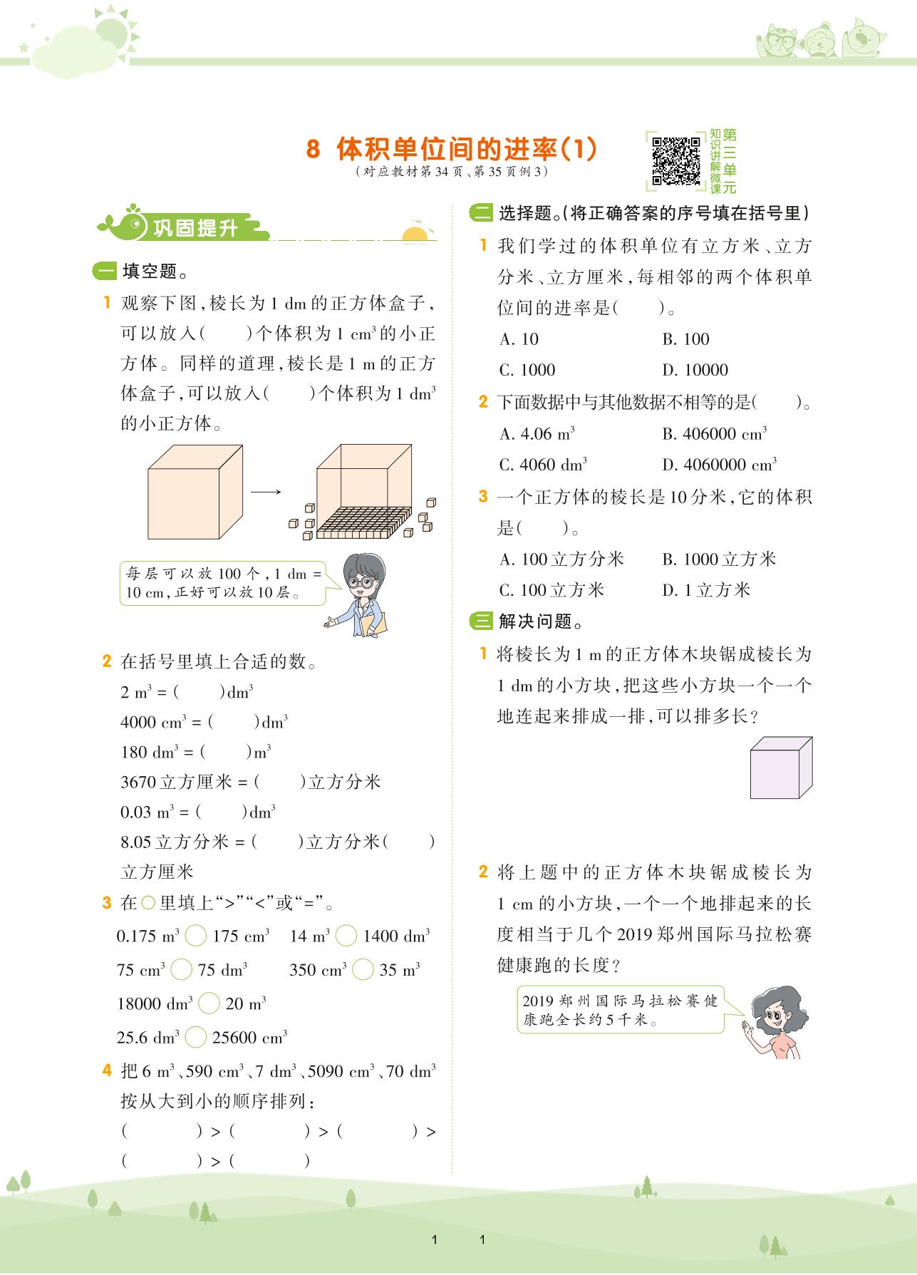 2021下册五年级数学人教版 第三单元 长方体和正方体——8 体积单位间的进率(1)
