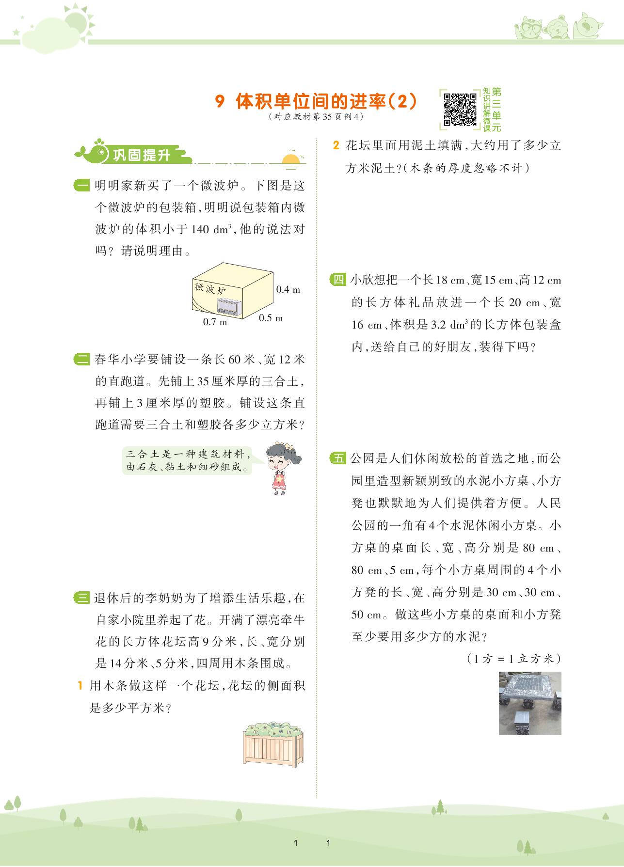 2021下册五年级数学人教版 第三单元 长方体和正方体——9 体积单位间的进率(2)