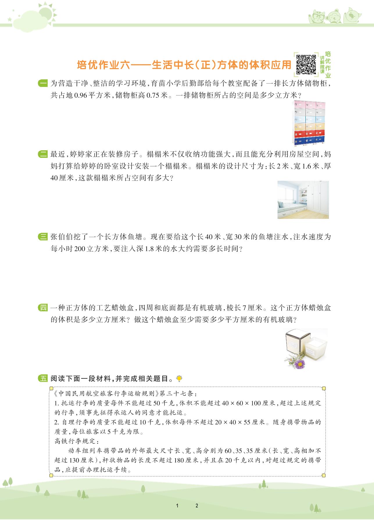 2021下册五年级数学人教版 第三单元 长方体和正方体——培优作业六 生活中长(正)方体的体积应用