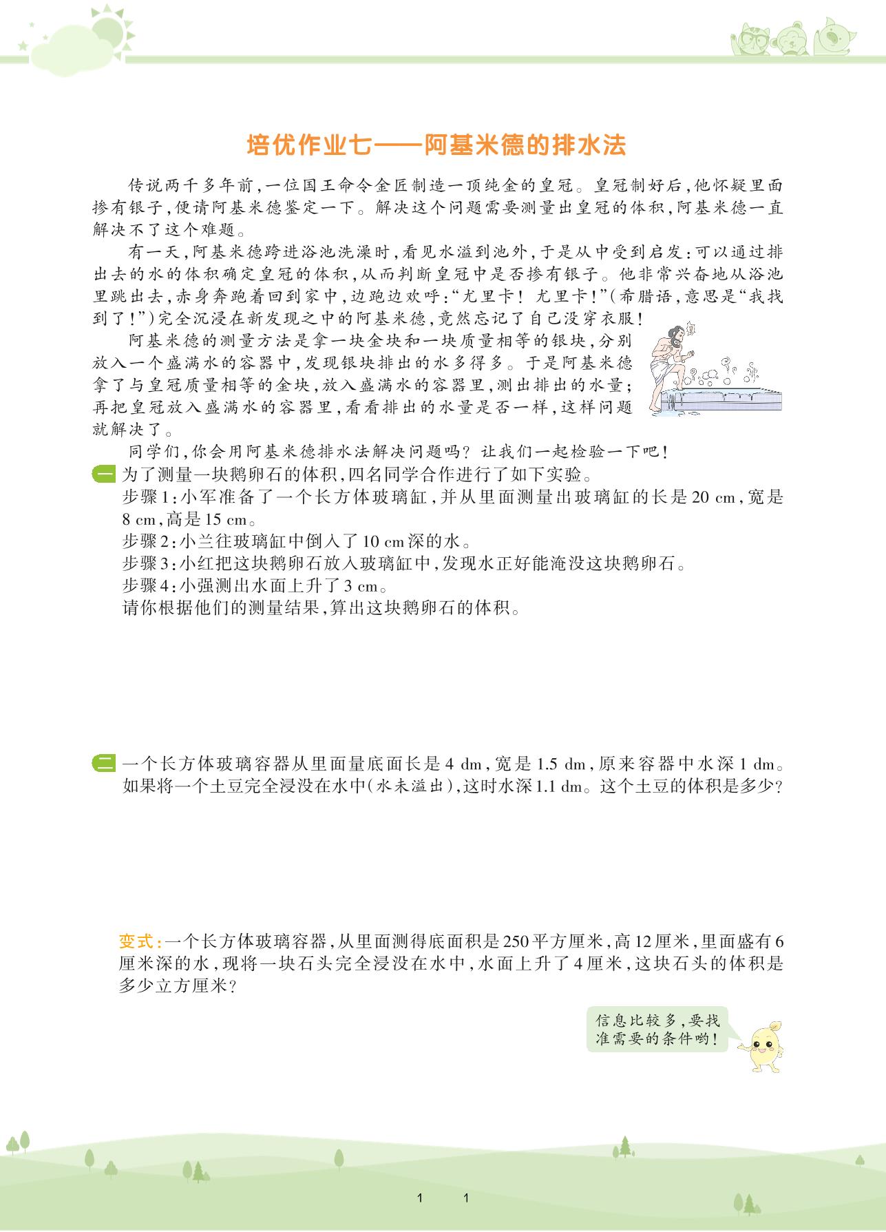 2021下册五年级数学人教版 第三单元 长方体和正方体——培优作业七 阿基米德的排水法