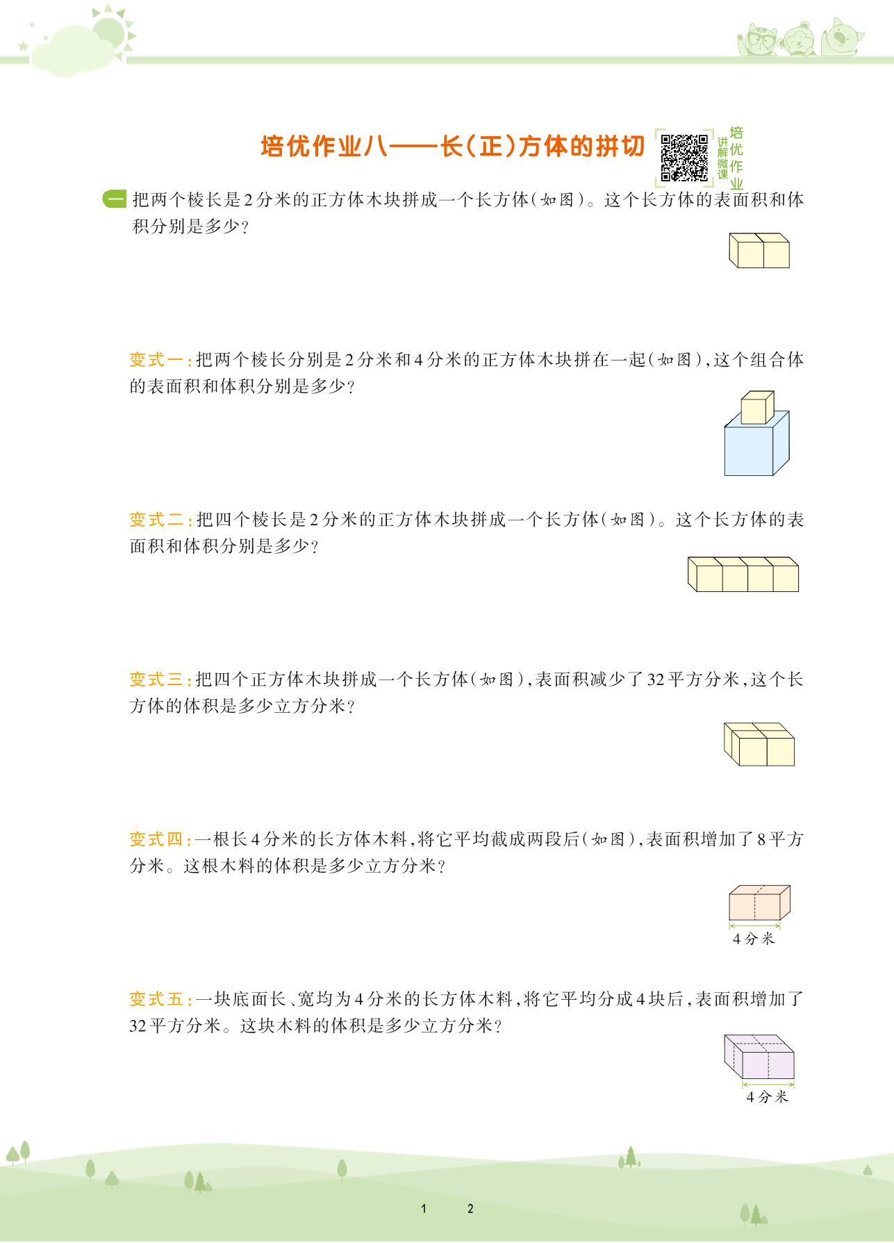 2021下册五年级数学人教版 第三单元 长方体和正方体——培优作业八 长(正)方体的拼切