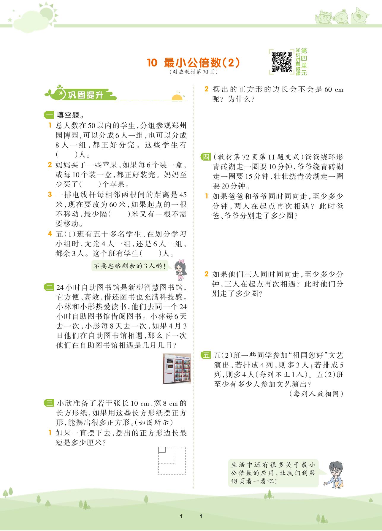 2021下册五年级数学人教版 第四单元 分数的意义和性质——10 最小公倍数(2)