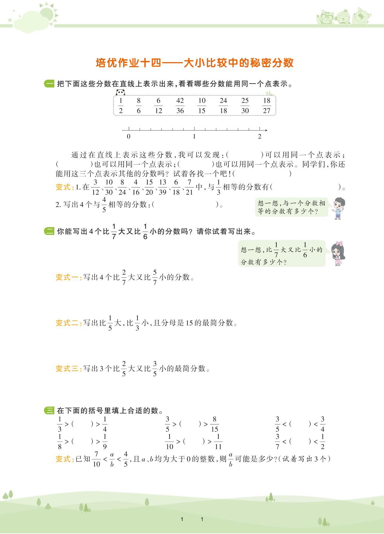 2021下册五年级数学人教版 第四单元 分数的意义和性质——培优作业十四 大小比较中的秘密分数