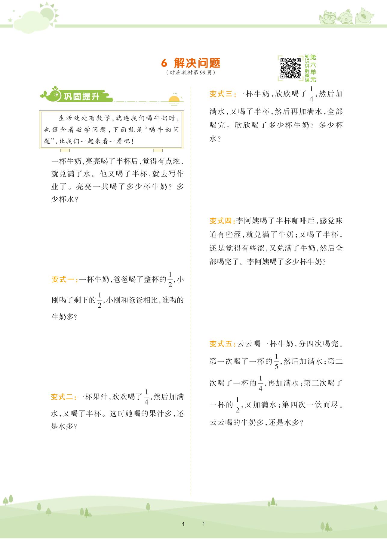 2021下册五年级数学人教版 第六单元 分数的加法和减法——6 解决问题