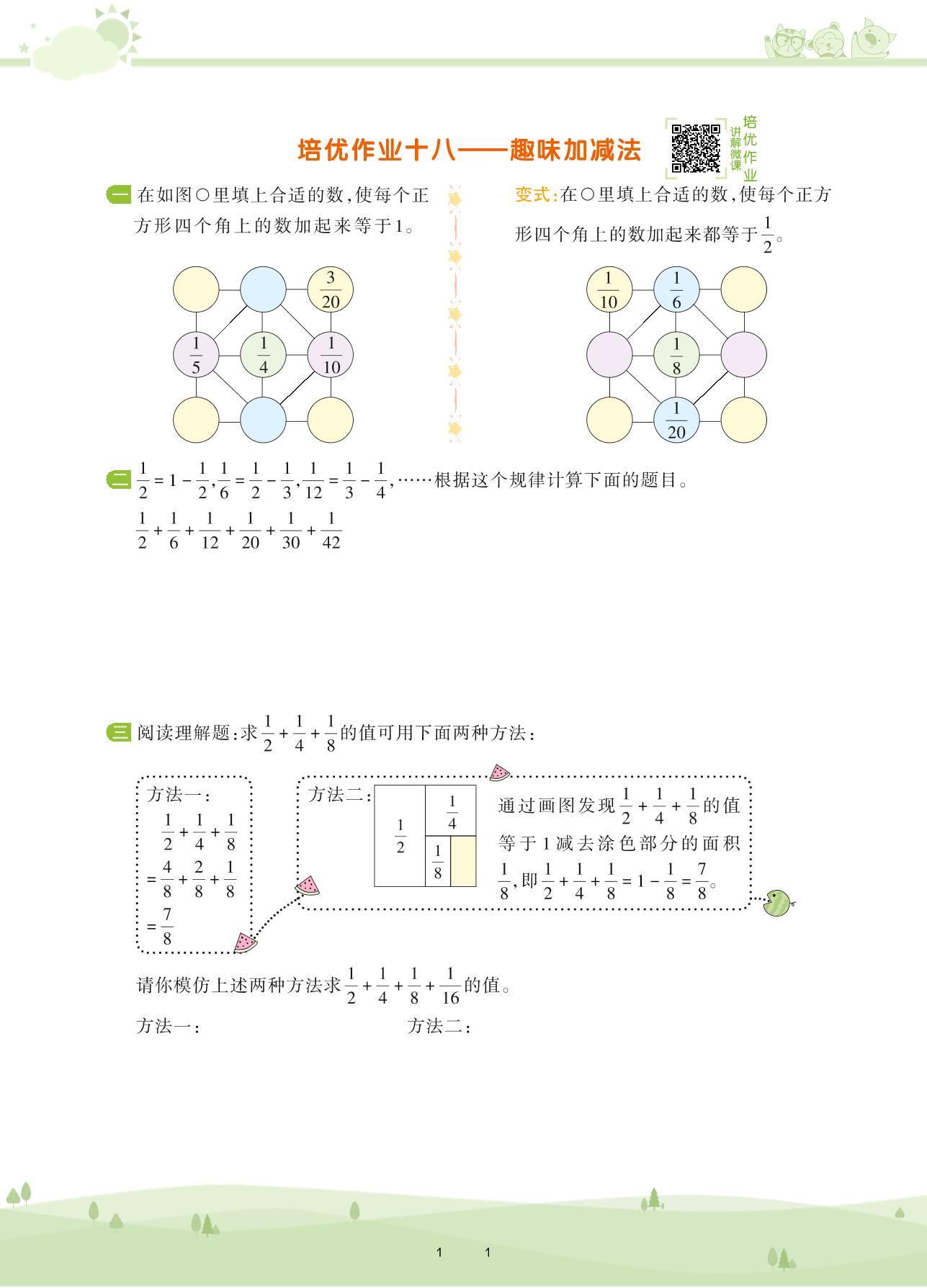 2021下册五年级数学人教版 第六单元 分数的加法和减法——培优作业十八 趣味加减法