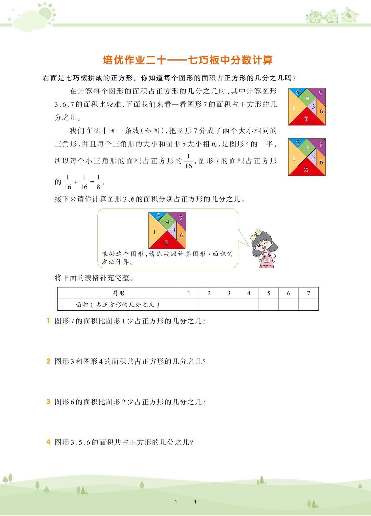 2021下册五年级数学人教版 第六单元 分数的加法和减法——培优作业二十 七巧板中分数计算