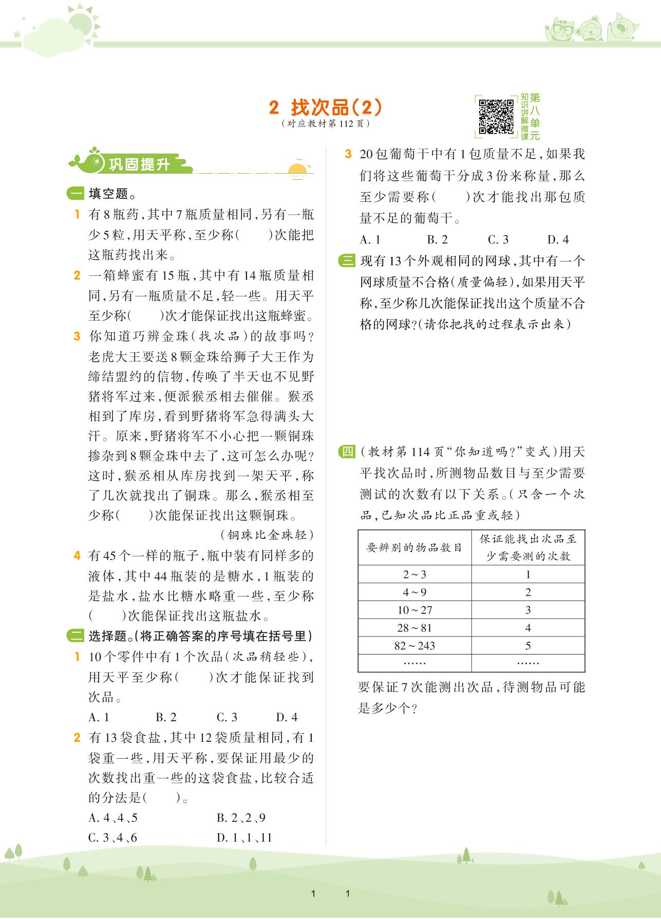 2021下册五年级数学人教版 第八单元 数学广角——找次品——2 找次品(2)