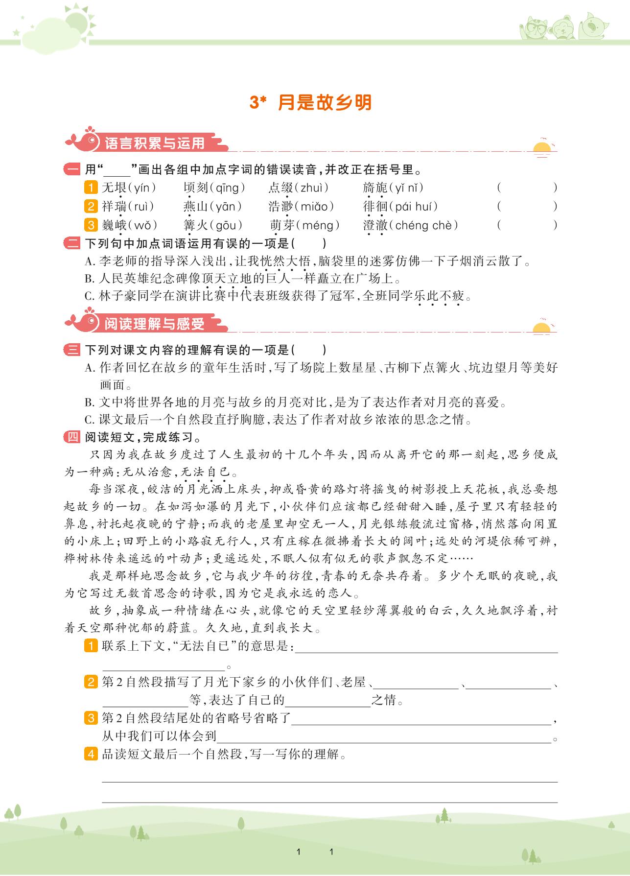 2021下册五年级语文人教版 第一单元——3 月是故乡明