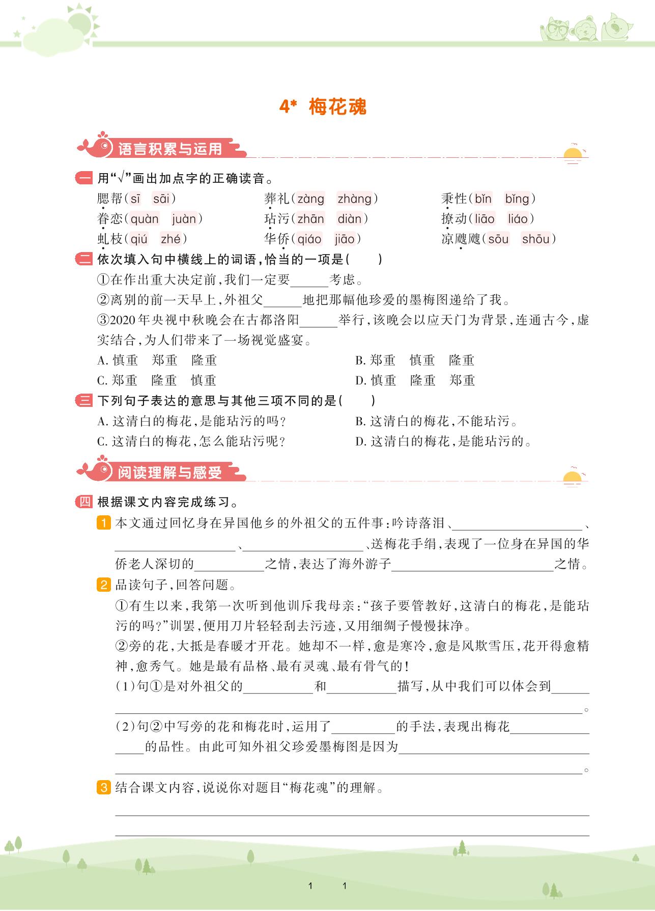 2021下册五年级语文人教版 第一单元——4 梅花魂