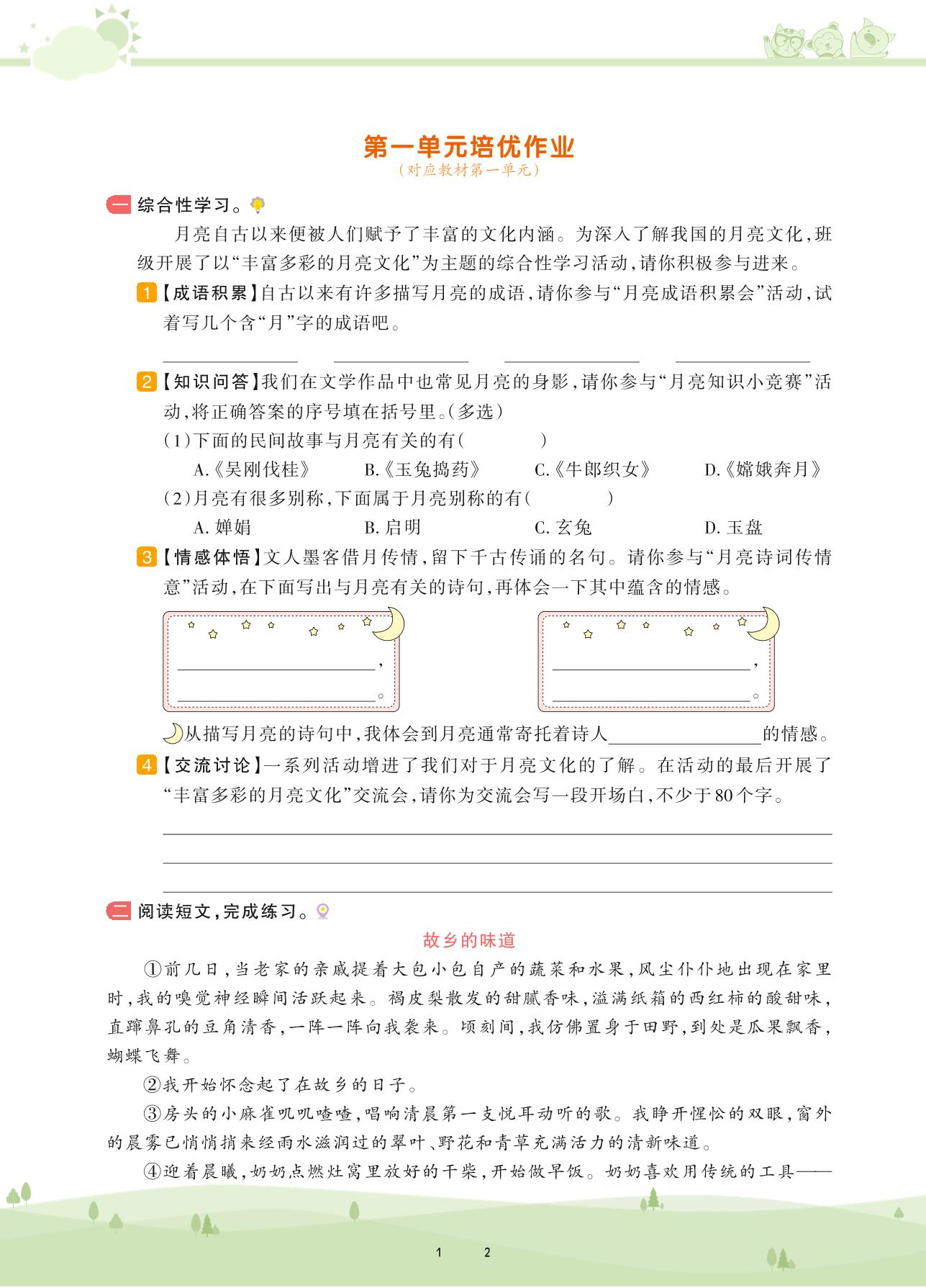 2021下册五年级语文人教版 第一单元——第一单元培优作业