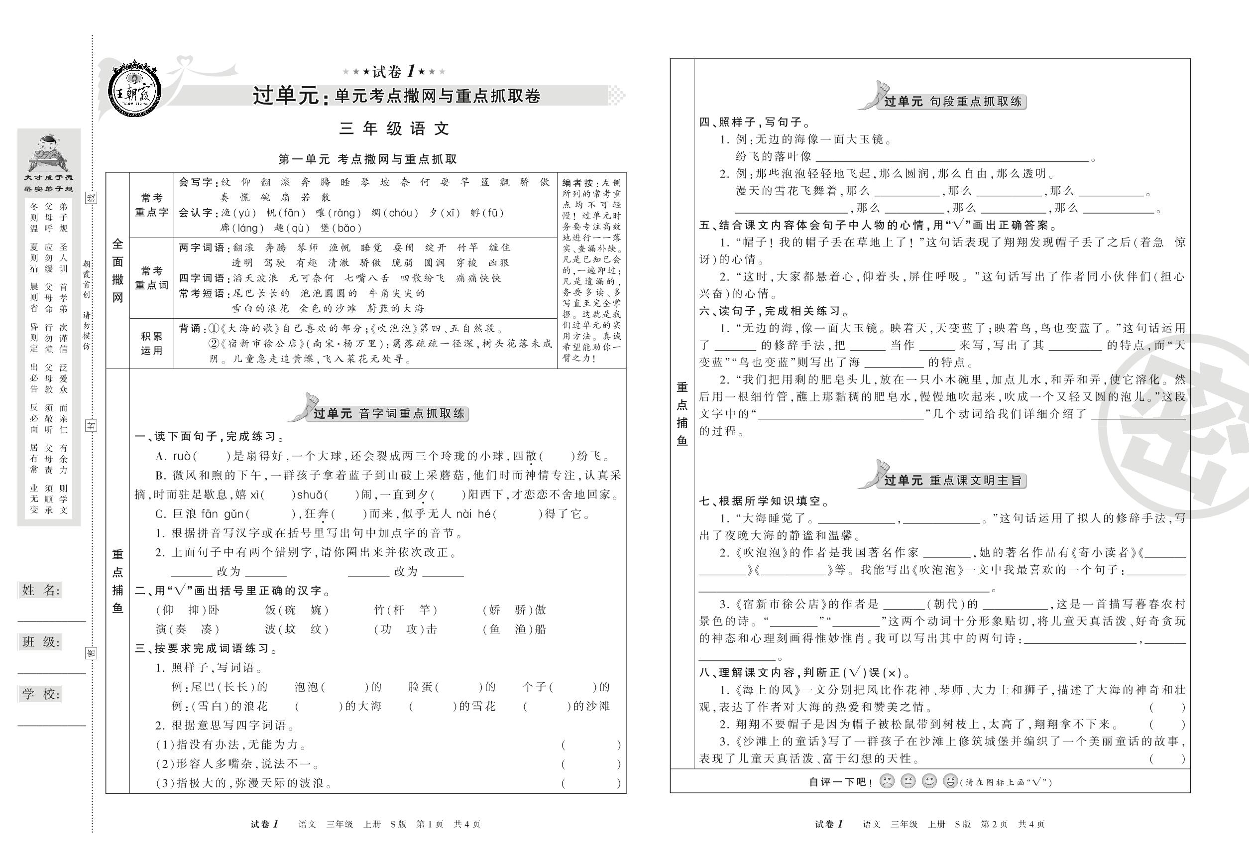 王朝霞期末过单元三年级上册语文(S版)【1】