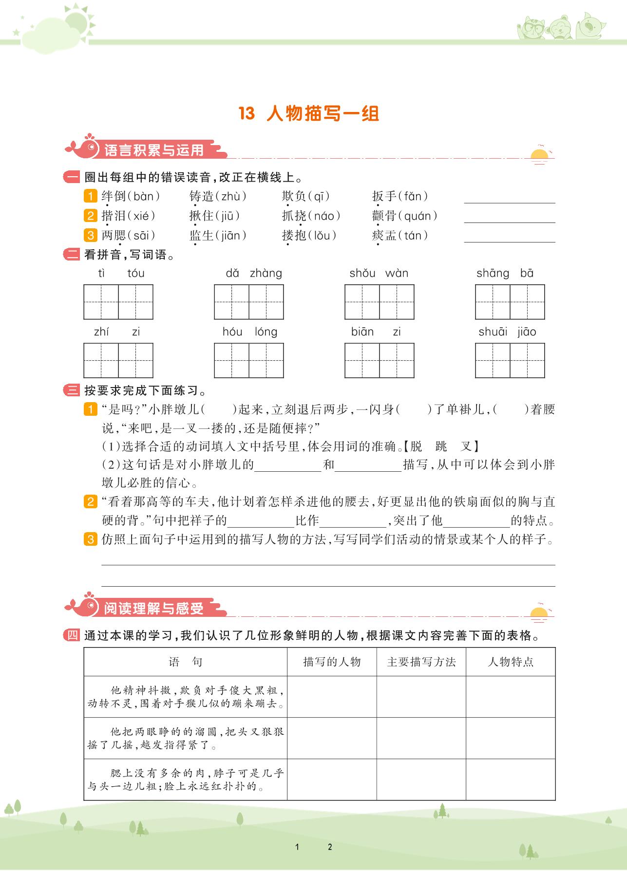 2021下册五年级语文人教版 第五单元——13 人物描写一组