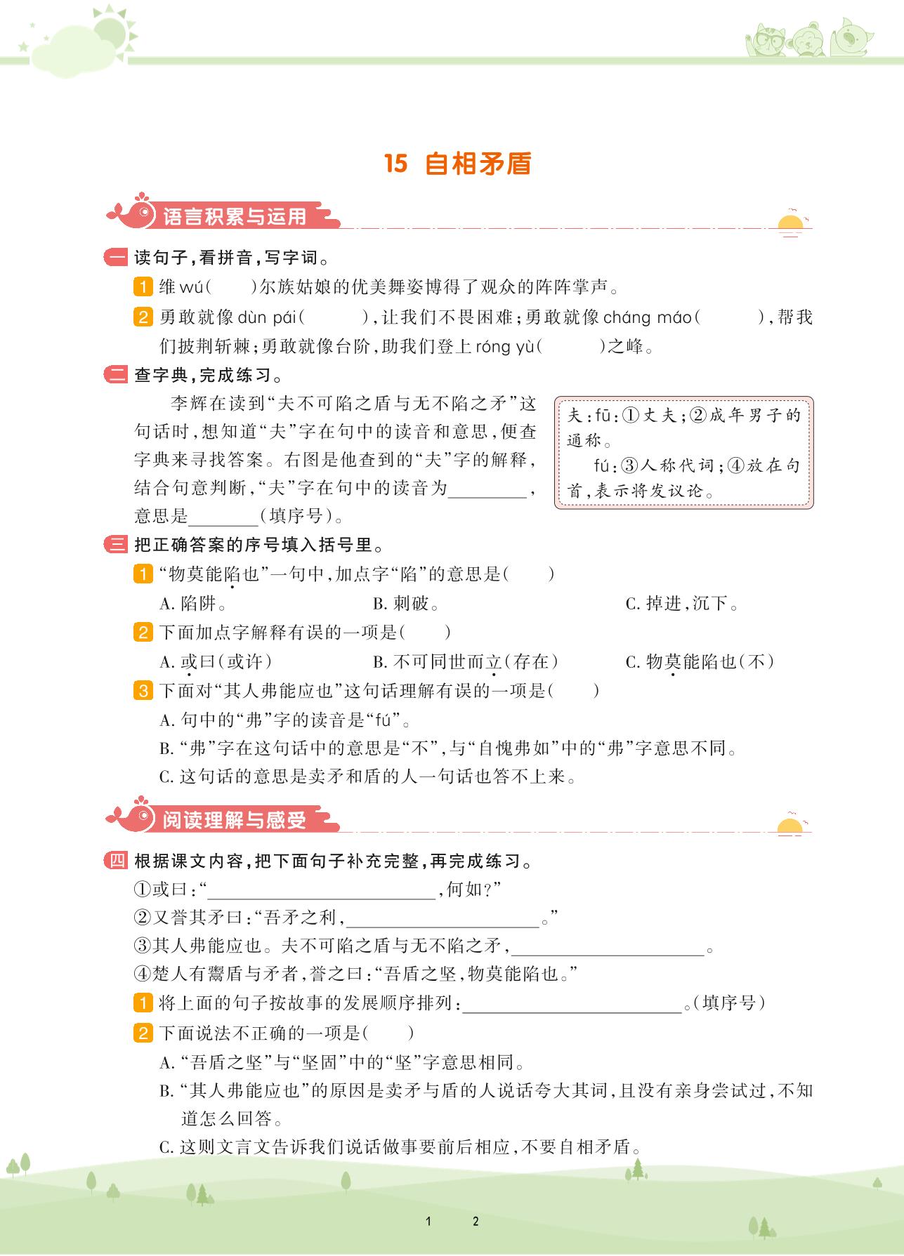 2021下册五年级语文人教版 第六单元——15 自相矛盾