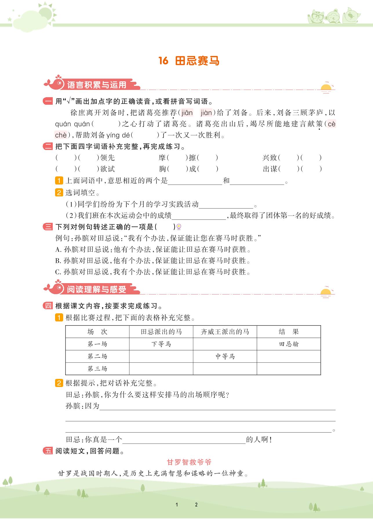 2021下册五年级语文人教版 第六单元——16 田忌赛马