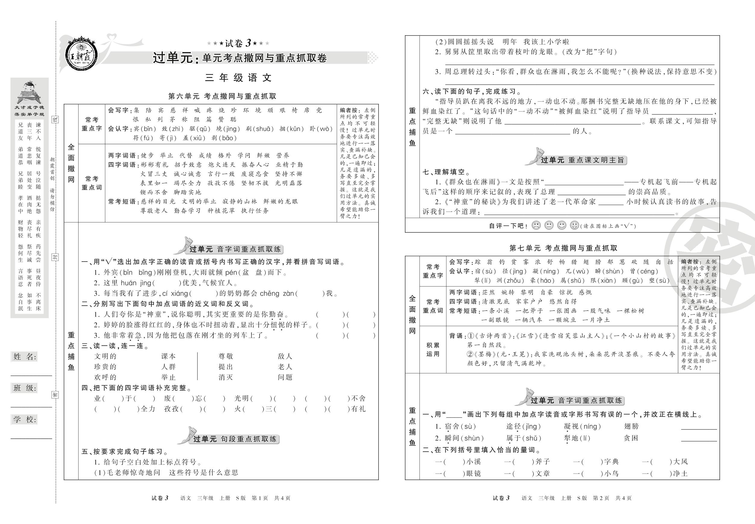 王朝霞期末过单元三年级上册语文(S版)【3】