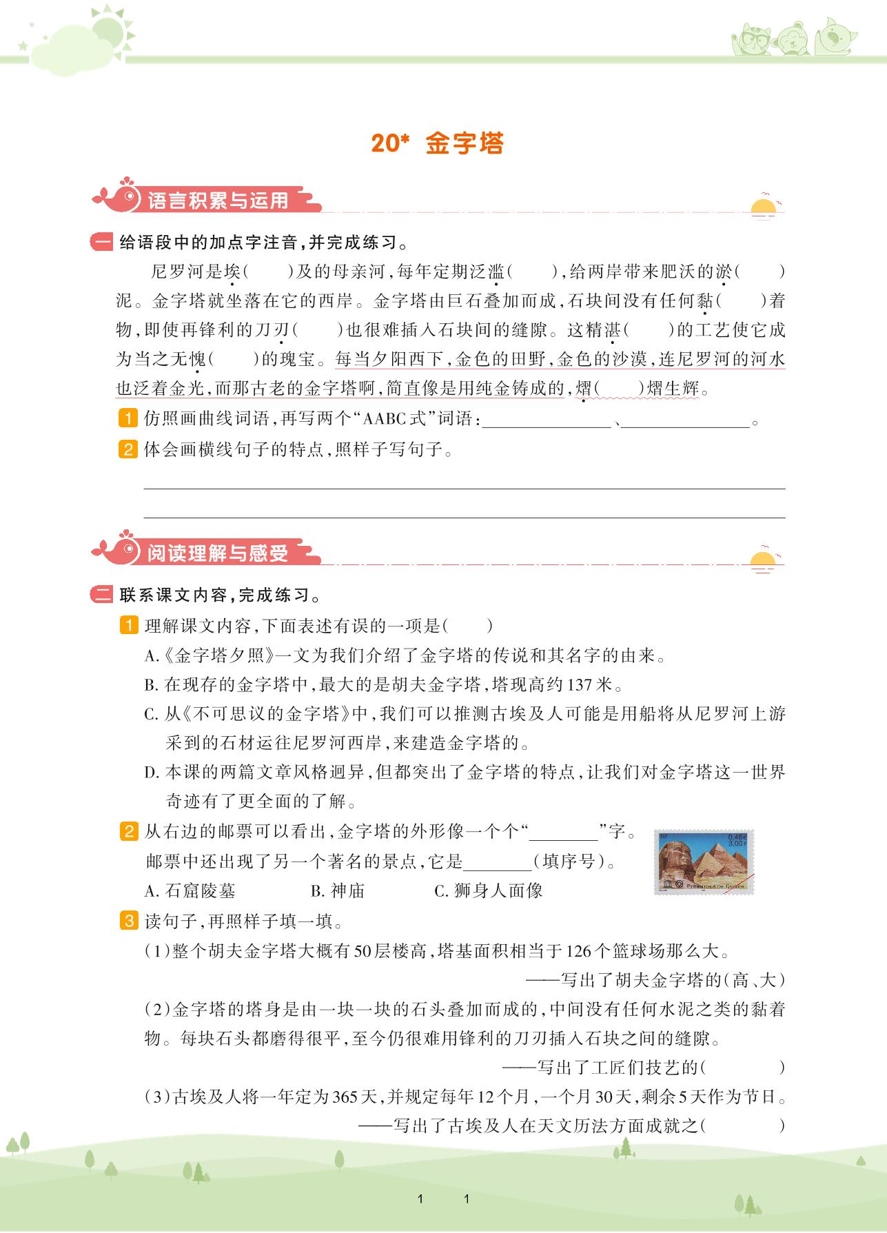 2021下册五年级语文人教版 第七单元——20 金字塔