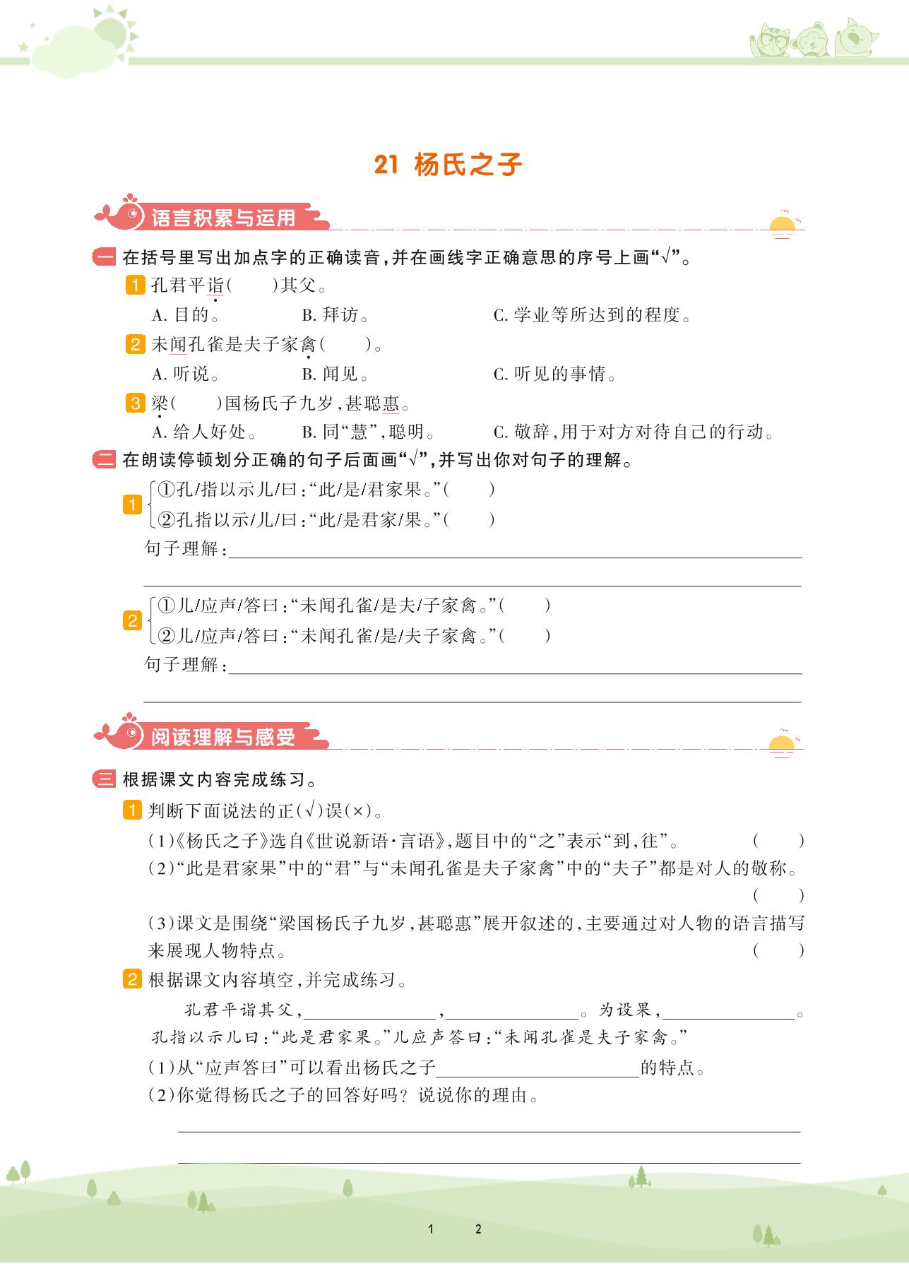 2021下册五年级语文人教版 第八单元——21 杨氏之子