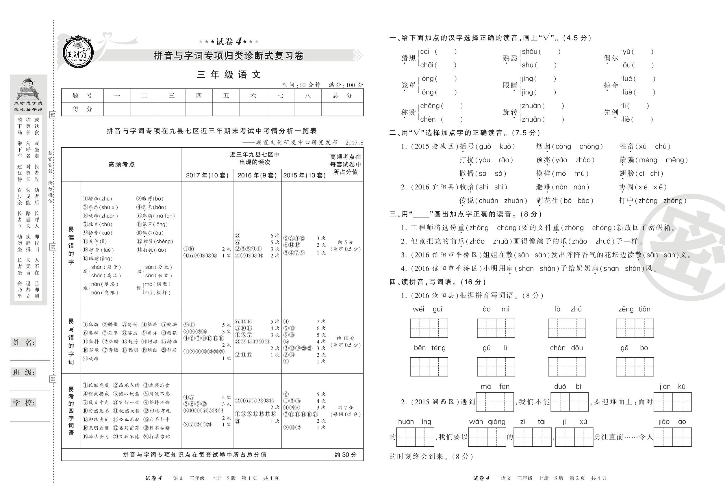 王朝霞期末专项卷三年级上册语文(S版)_R210801102115【4】