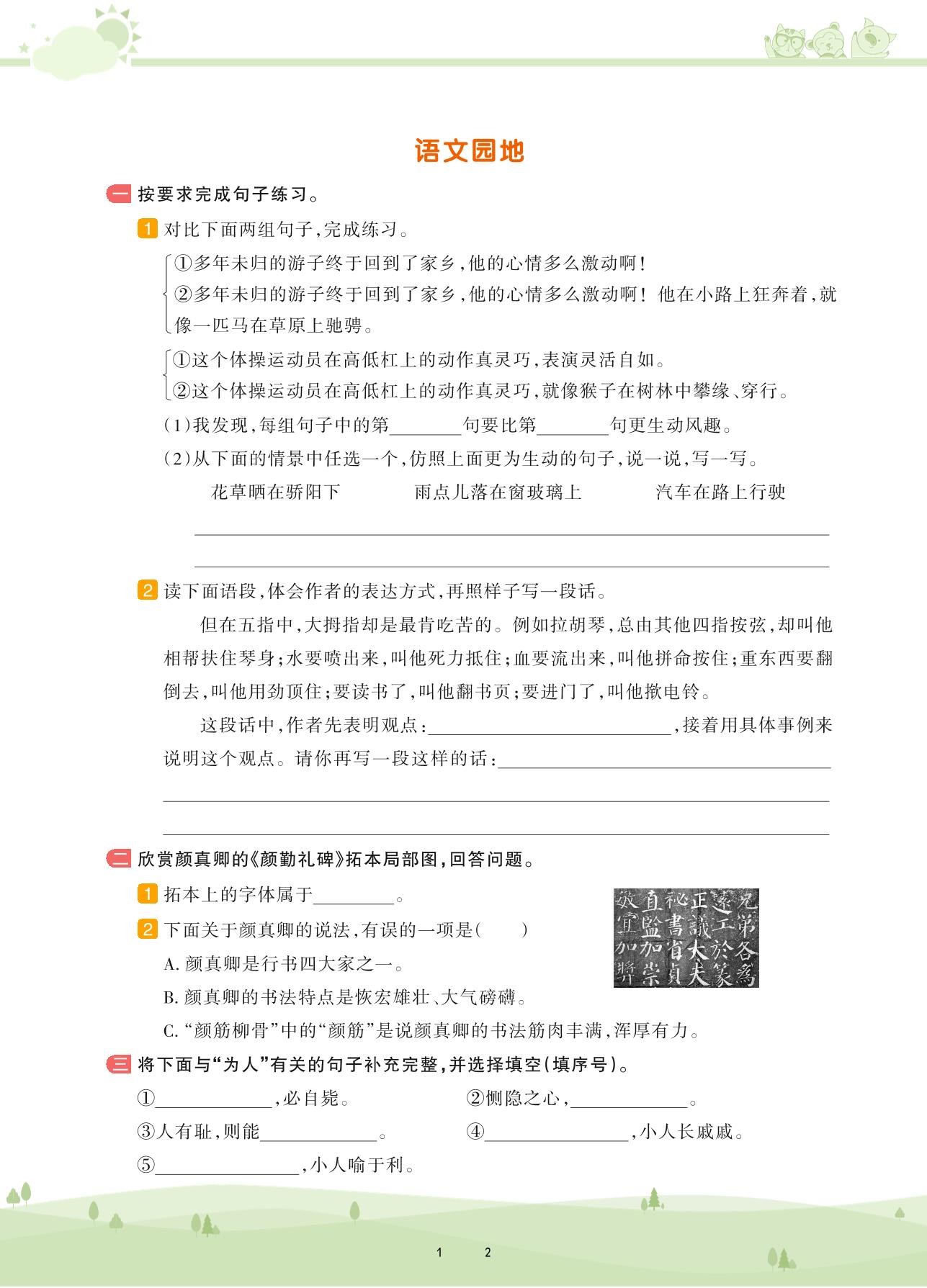2021下册五年级语文人教版 第八单元——语文园地