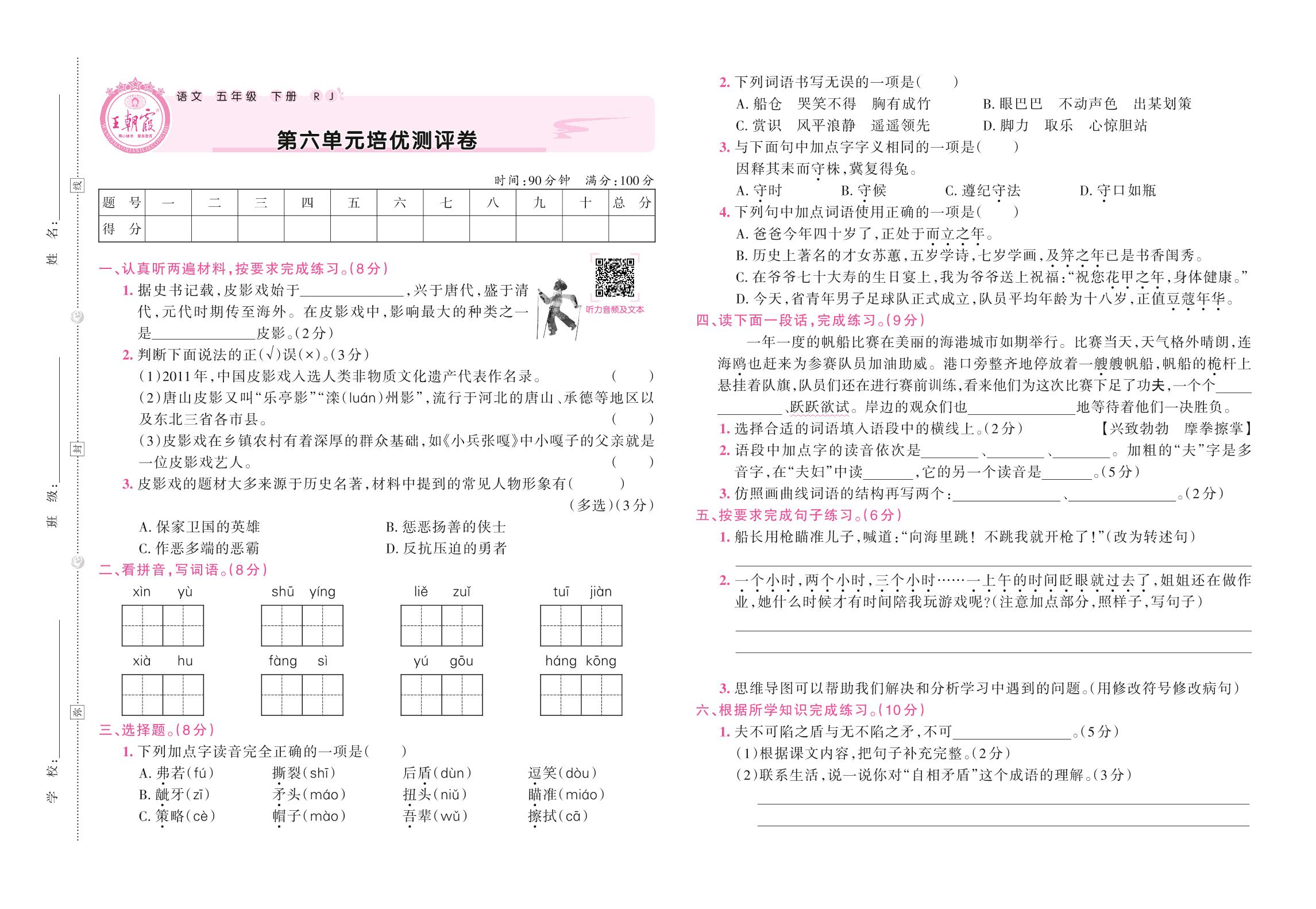 五年级语文人教版下册单元卷