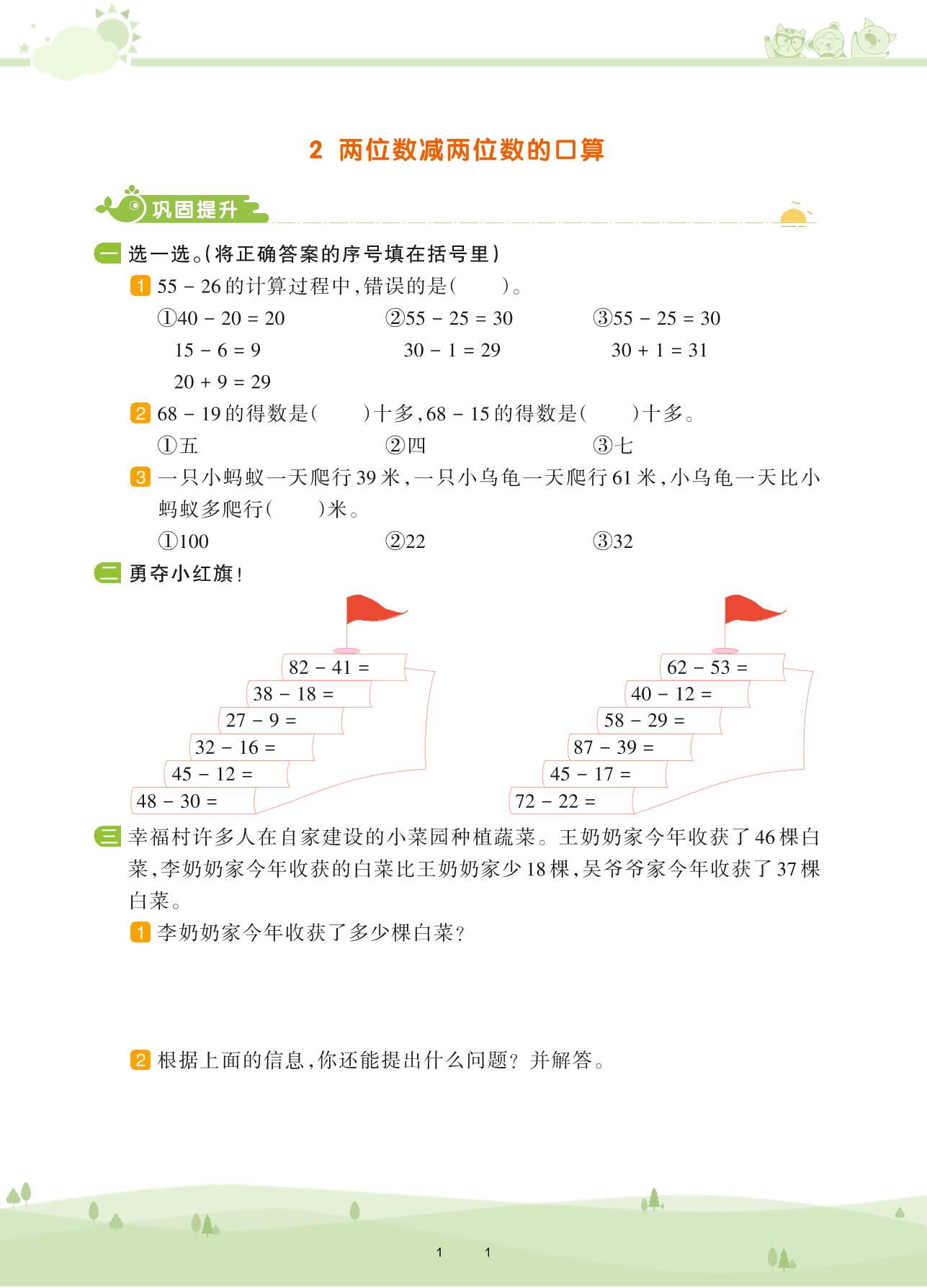 2021下册二年级数学苏教版 第六单元 两、三位数的加法和减法——2 两位数减两位数的口算