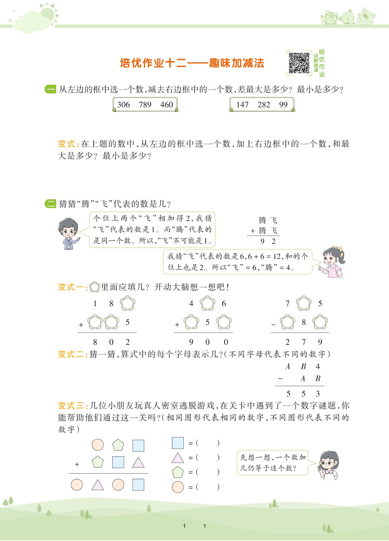 2021下册二年级数学苏教版 第六单元 两、三位数的加法和减法——培优作业十二 趣味加减法