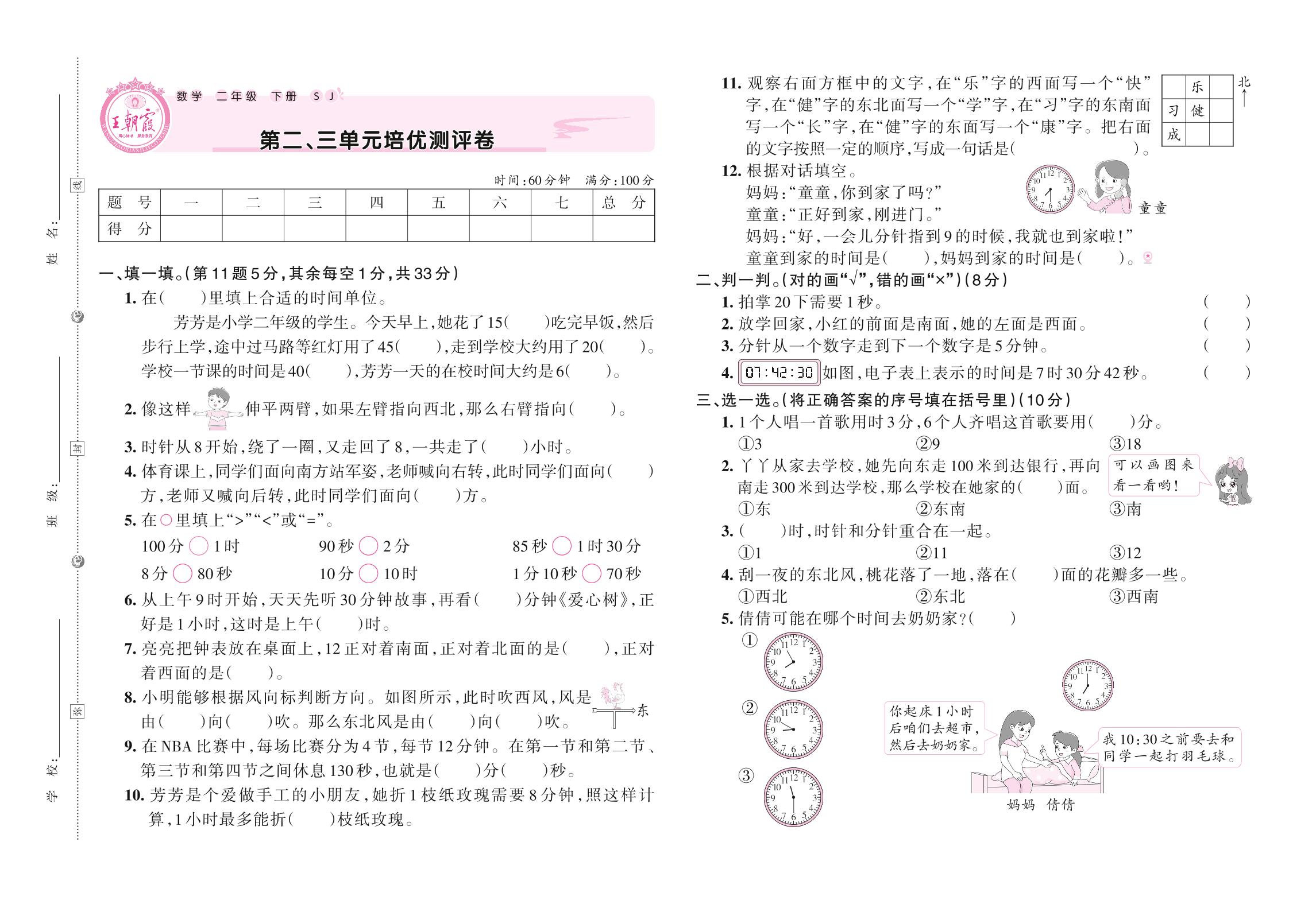 2021下册二年级数学苏教版 第二、三单元培优测评卷