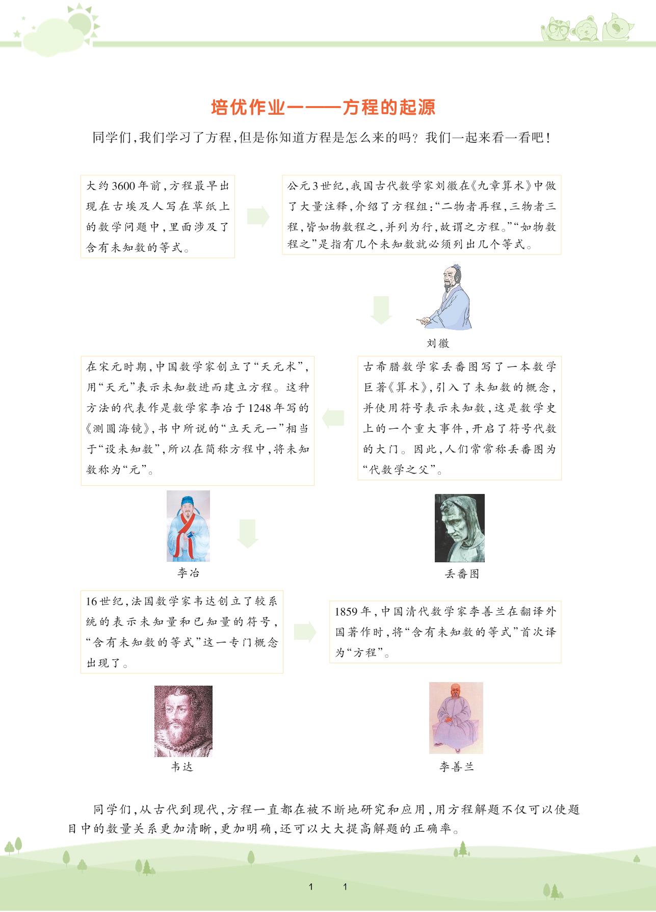 2021下册五年级数学苏教版 第一单元 简易方程——培优作业一 方程的起源