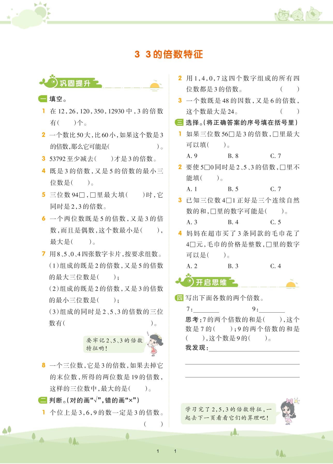 2021下册五年级数学苏教版 第三单元 因数与倍数——3 3的倍数特征