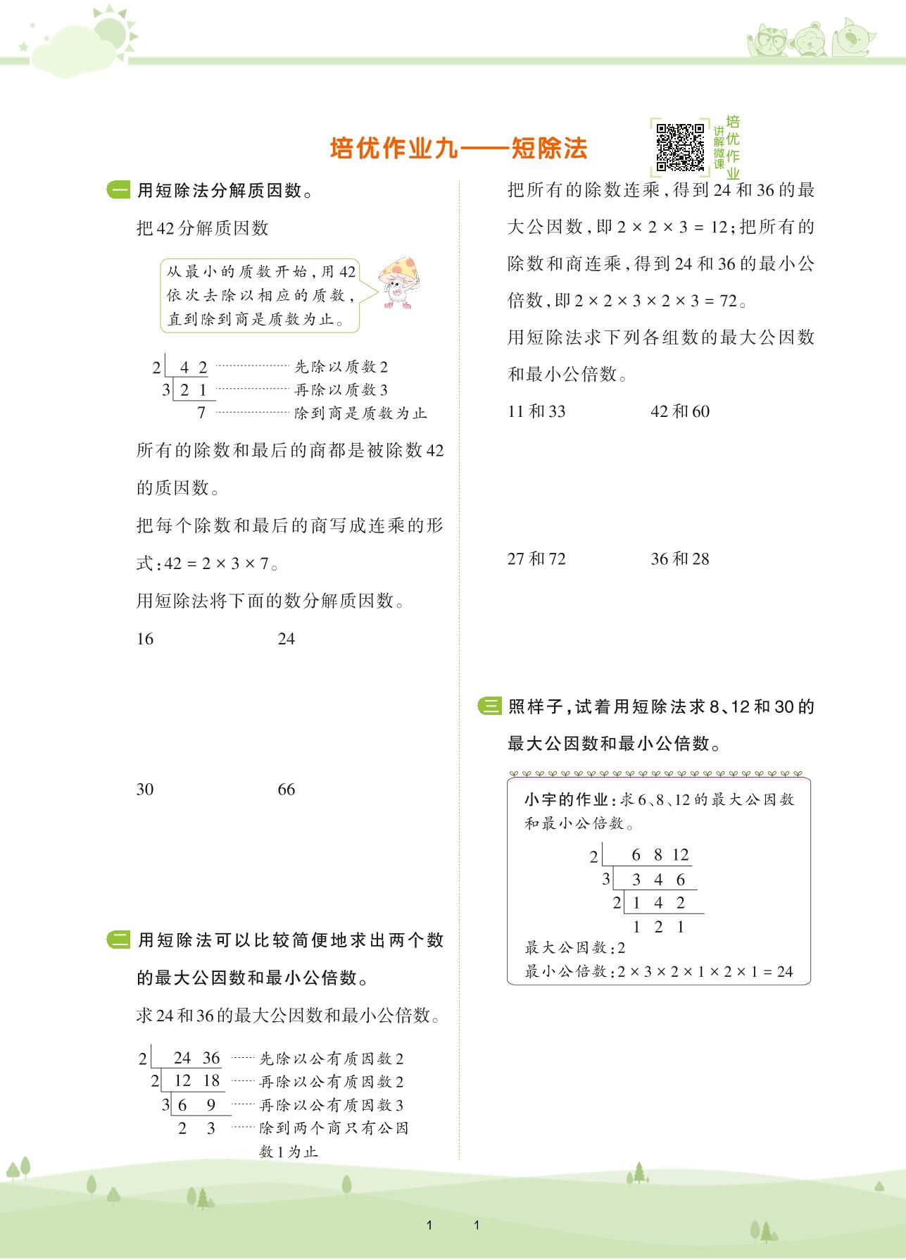 2021下册五年级数学苏教版 第三单元 因数与倍数——培优作业九 短除法